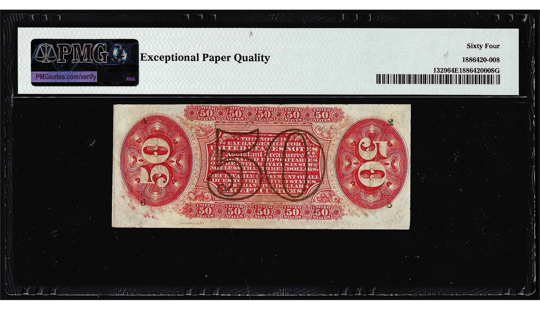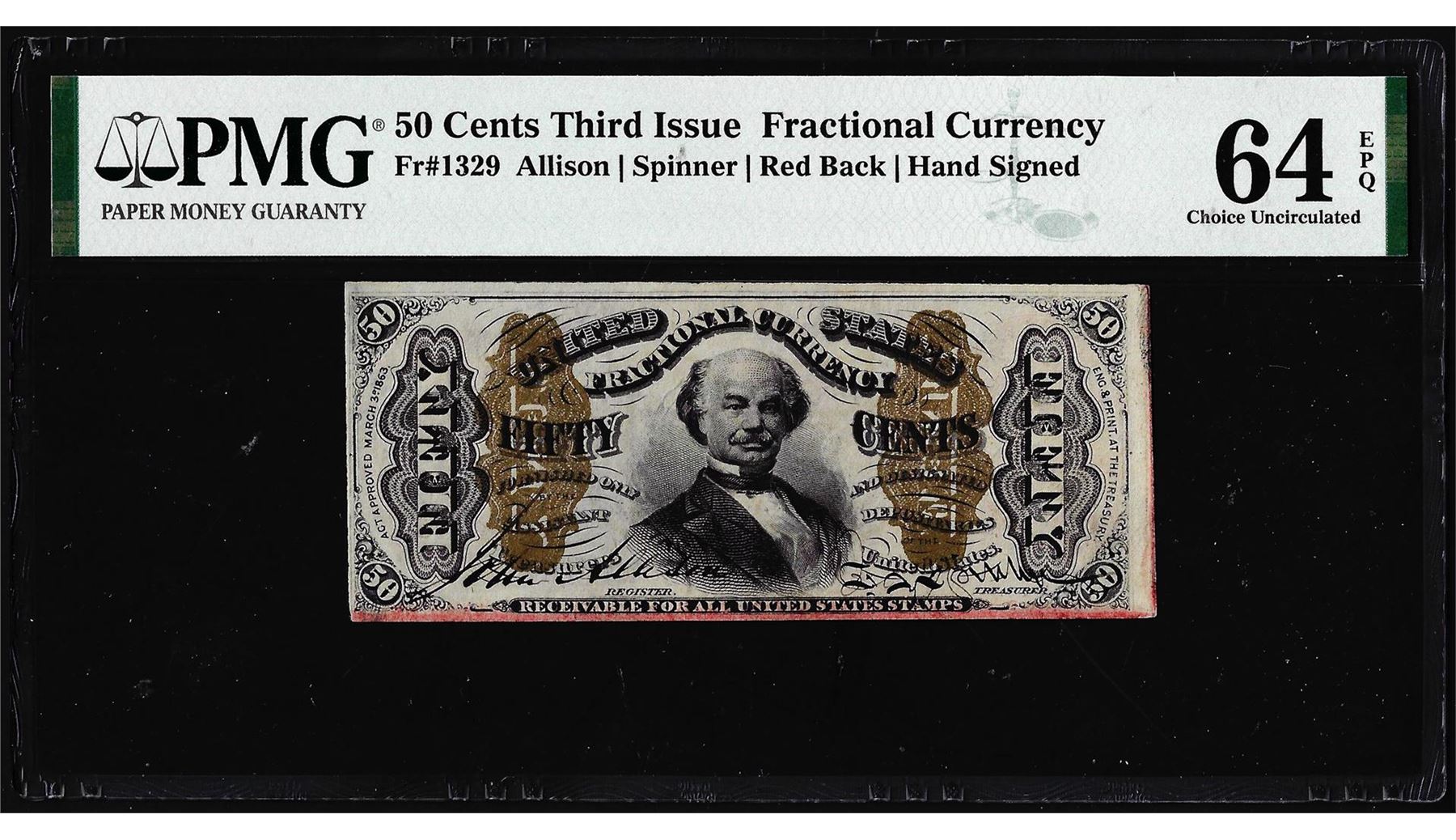 One 1863 Fifty Cents Third Issue Fractional Note Fr.1329 PMG Choice Uncirculated 64EPQ. PMG Certified.