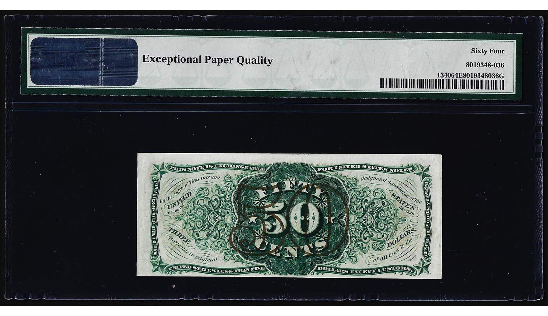 One 1863 Fifty Cents Third Issue Fractional Note Fr.1340 PMG Choice Uncirculated 64EPQ.