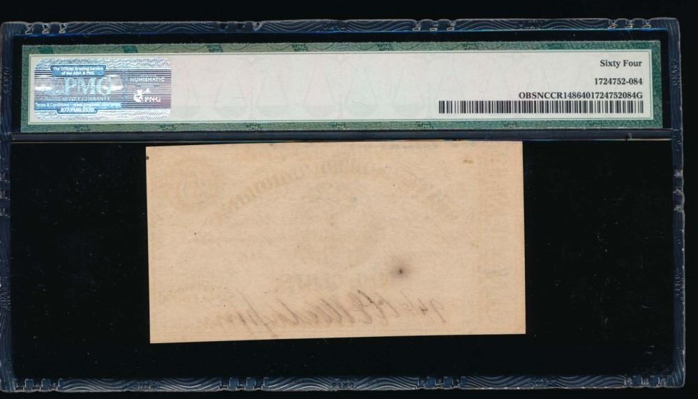 One 1863 Five Cent State of North Carolina Note PMG 64.