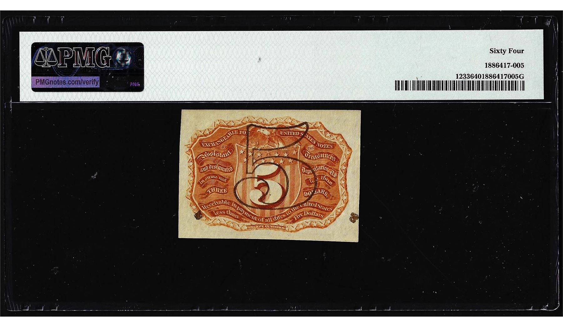 1863 Five Cents Second Issue Fractional Note Fr.1233 PMG Choice Uncirculated 64