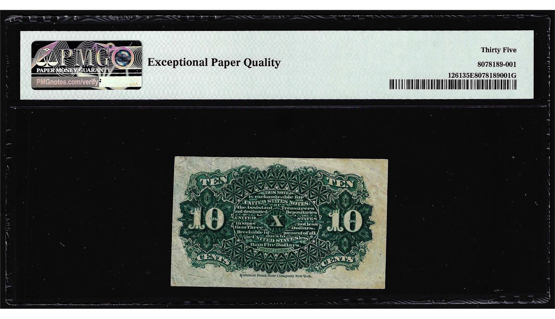 One 1863 Fourth Issue 10 Cents Fractional Note Fr.1261 PMG Choice Very Fine 35EPQ. PMG Certified.