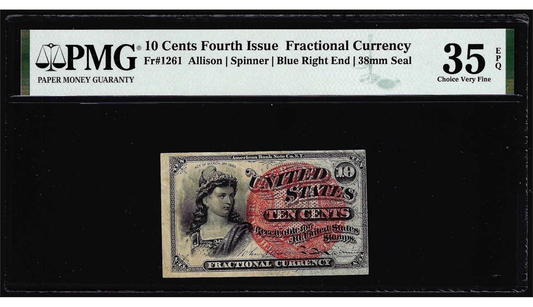 One 1863 Fourth Issue 10 Cents Fractional Note Fr.1261 PMG Choice Very Fine 35EPQ. PMG Certified.