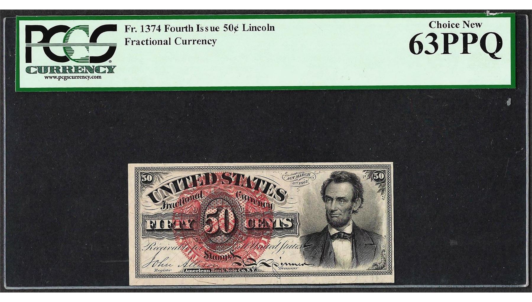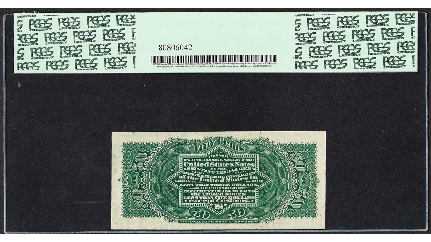 One 1863 Fourth Issue 50 Cents Fractional Currency Note PCGS Choice New 63PPQ. PCGS Graded.