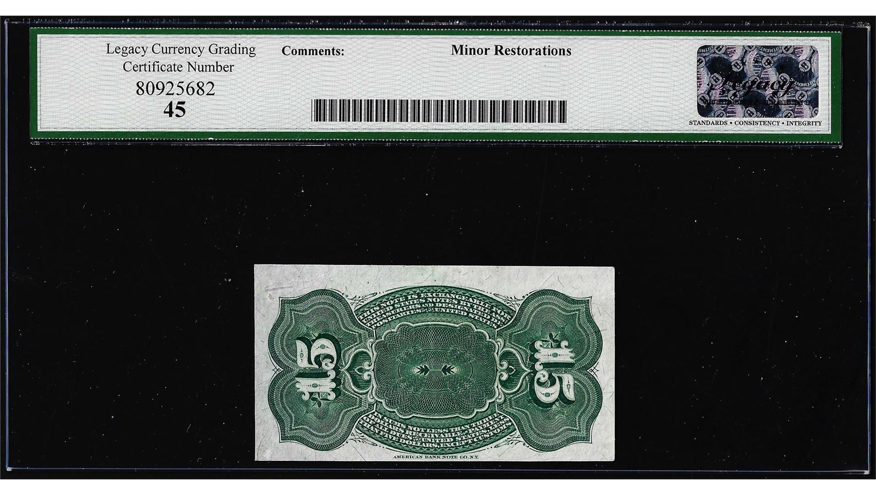 One 1863 Fourth Issue Fifteen Cents Fractional Note Fr.1269 Legacy Extremely Fine 45. Legacy Graded.