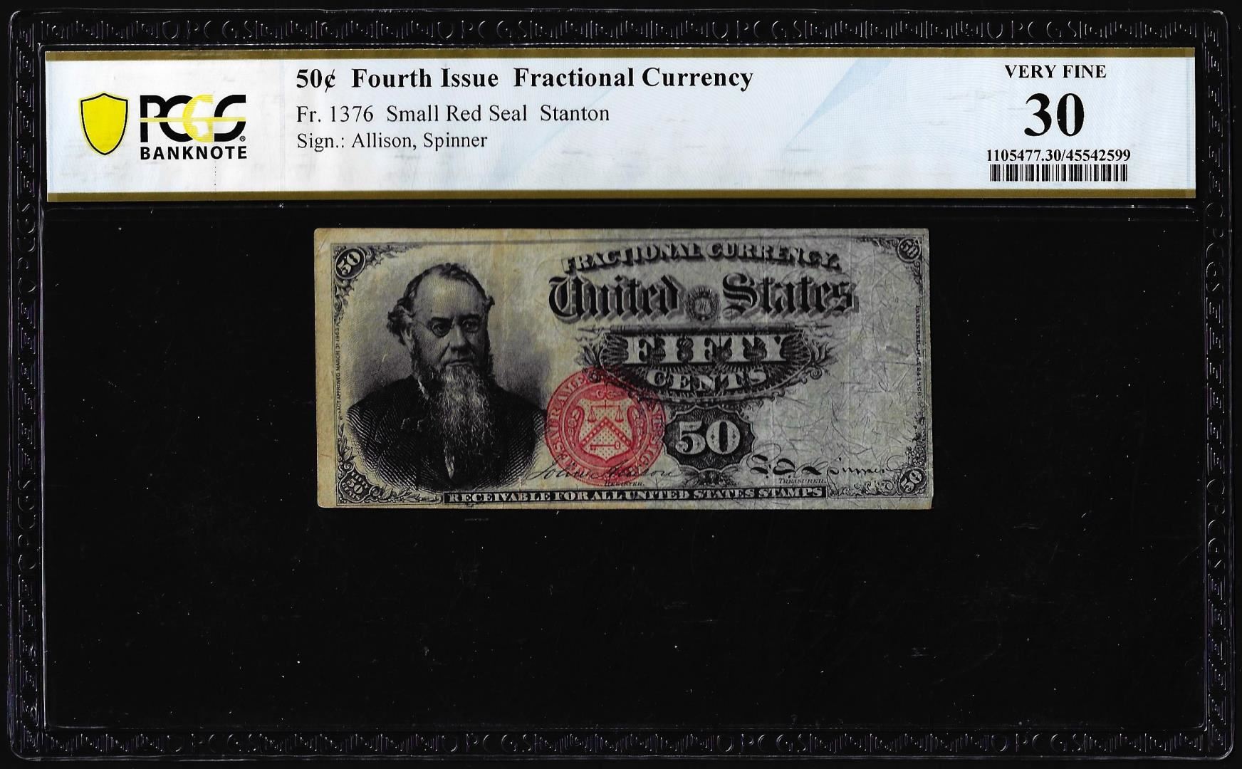 1863 Fourth Issue Fifty Cents Fractional Currency Note Fr.1376 PCGS Very Fine 30