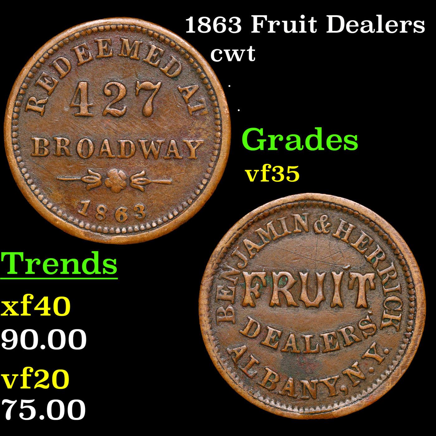 1863 Fruit Dealers Civil War Token 1c Grades vf++.