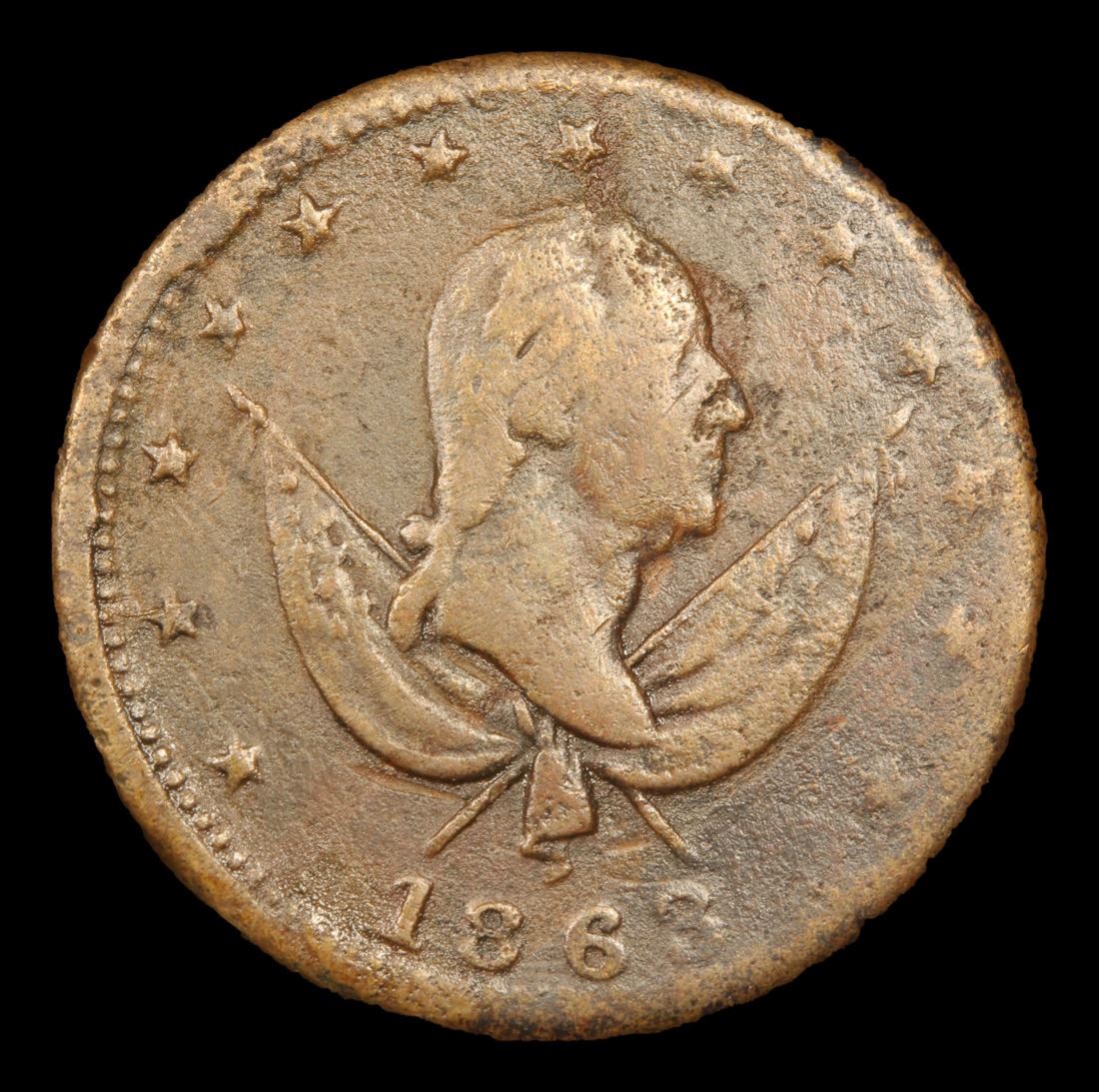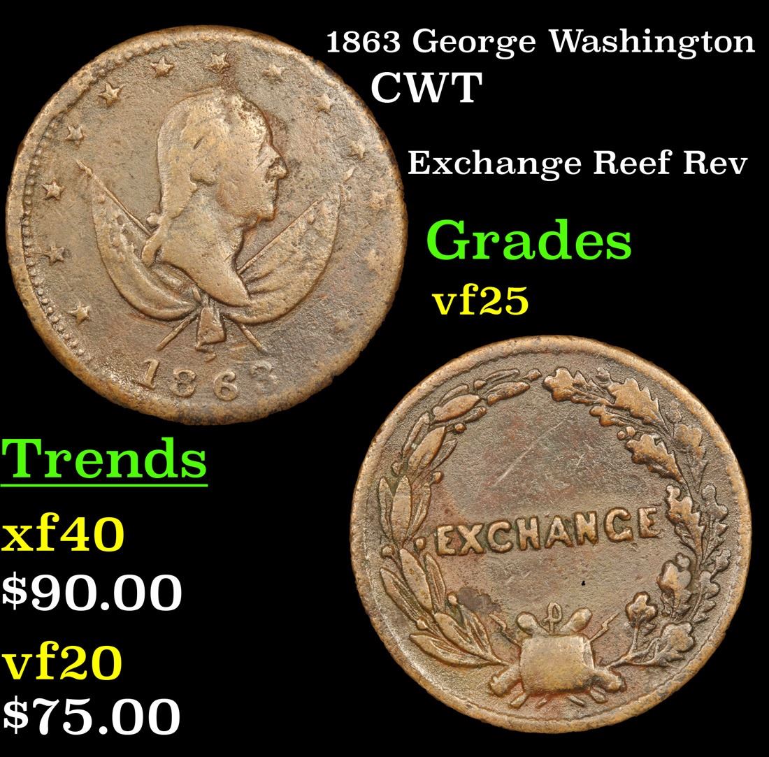 1863 George Washington Exchange Reef Rev . Civil War Token 1c Grades vf+.