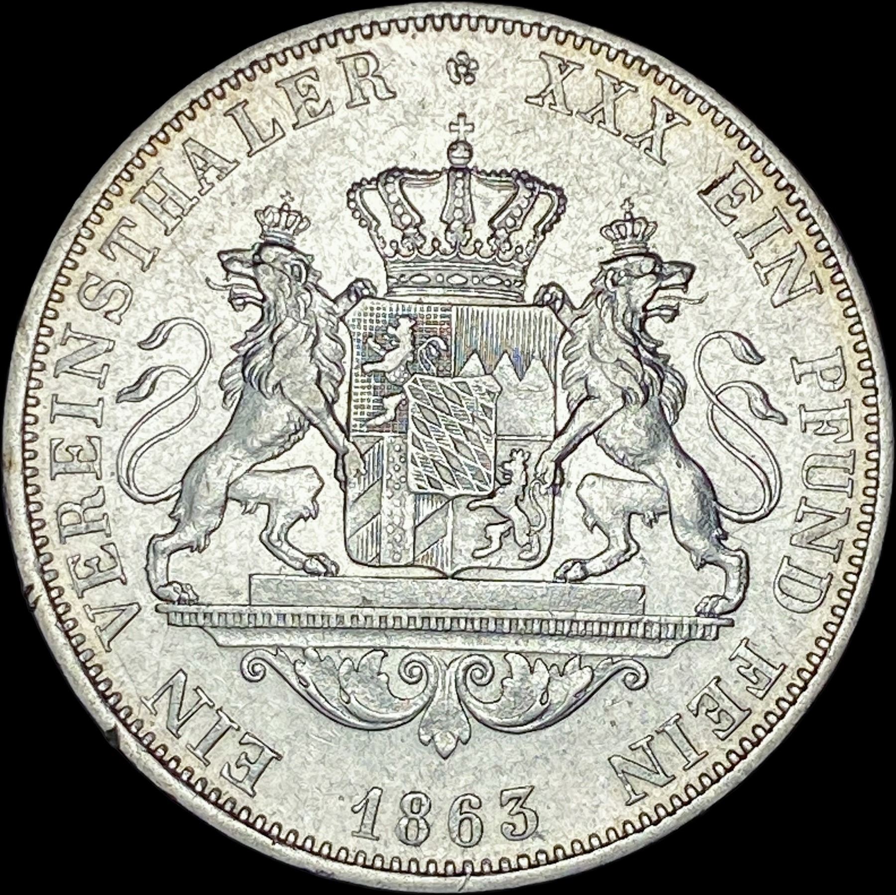 1863 German Bavaria Silver Taler UNCIRCULATED