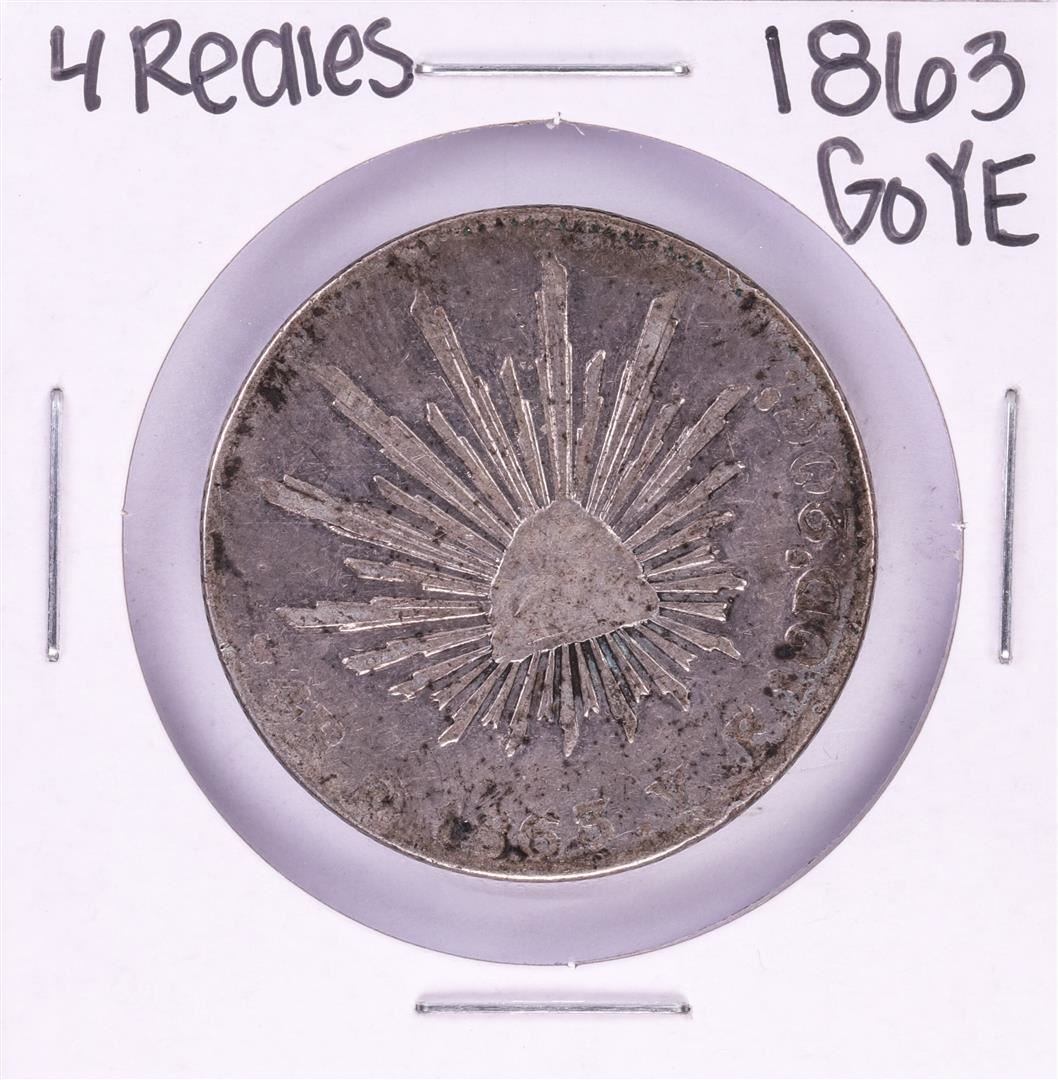One 1863 GoYE Mexico 4 Reales Silver Coin.
