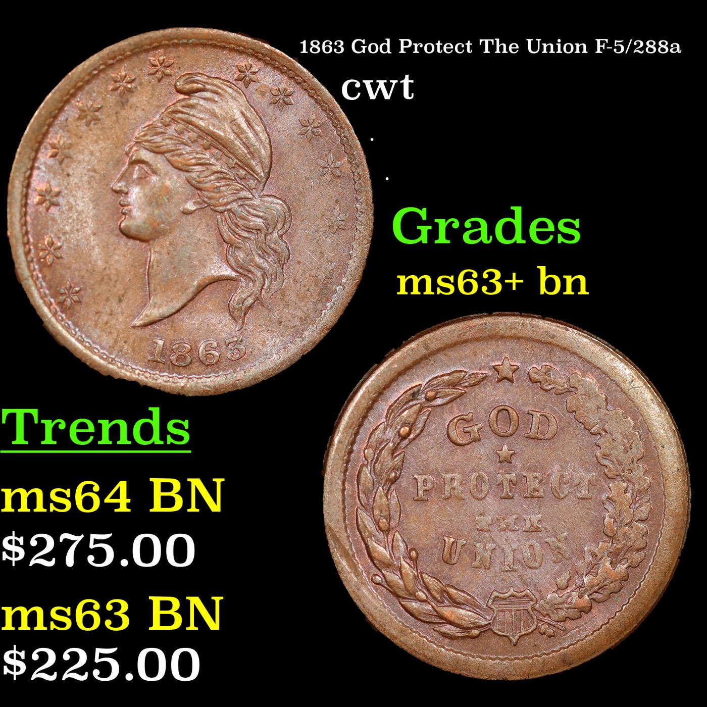 1863 God Protect The Union F-5/288a Civil War Token 1c Grades Select+ Unc BN.
