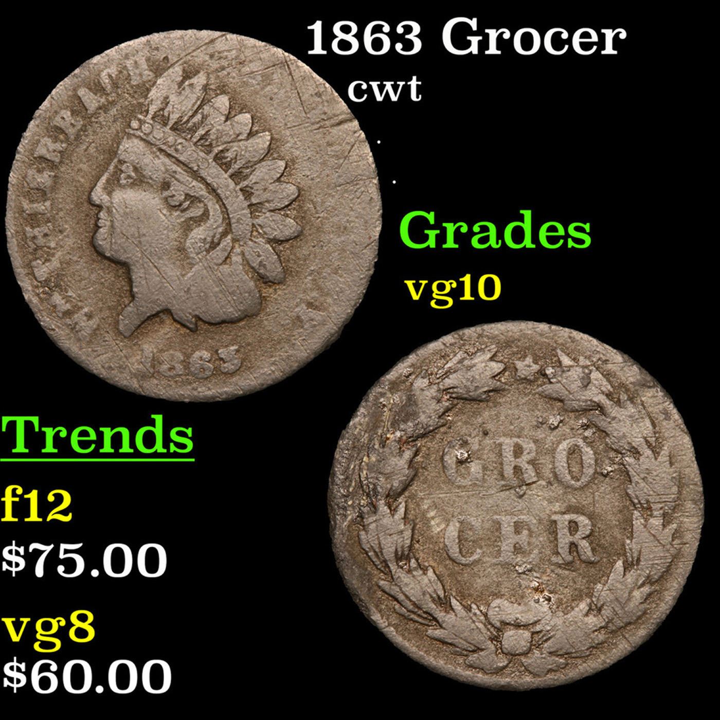 1863 Grocer Civil War Token 1c Grades vg+.