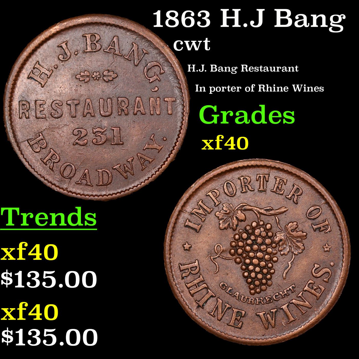 1863 H.J Bang Civil War Token 1c Grades xf.