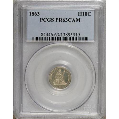 <B>1863 H10C PR63 Cameo PCGS.</B></I> PCGS Population (5/12). NGC Census: (0/20). (#84446)<BR><BR><b>Shipping:</b> Coins & Currency (<a target="_blank" href="http://www.heritageauctions.com/common/shipping.php">view shipping information</a>)