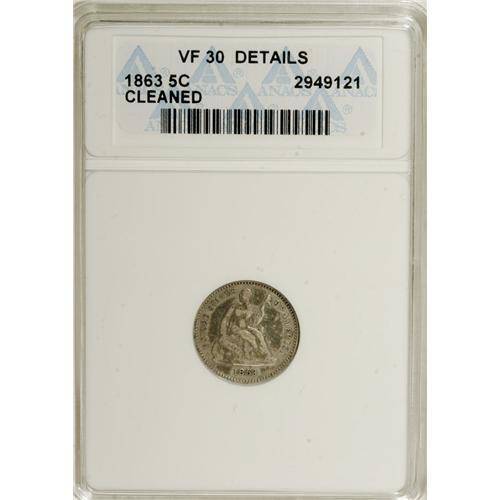 <B>1863 H10C --Cleaned--ANACS. VF30 Details.</B></I> NGC Census: (1/102). PCGS Population (3/126). Mintage: 18,000. Numismedia Wsl. Price: $286. (#4382)<BR><BR><b>Shipping:</b> Coins & Currency (<a target="_blank" href="http://www.heritageauctions.com/common/shipping.php">view shipping information</a>)