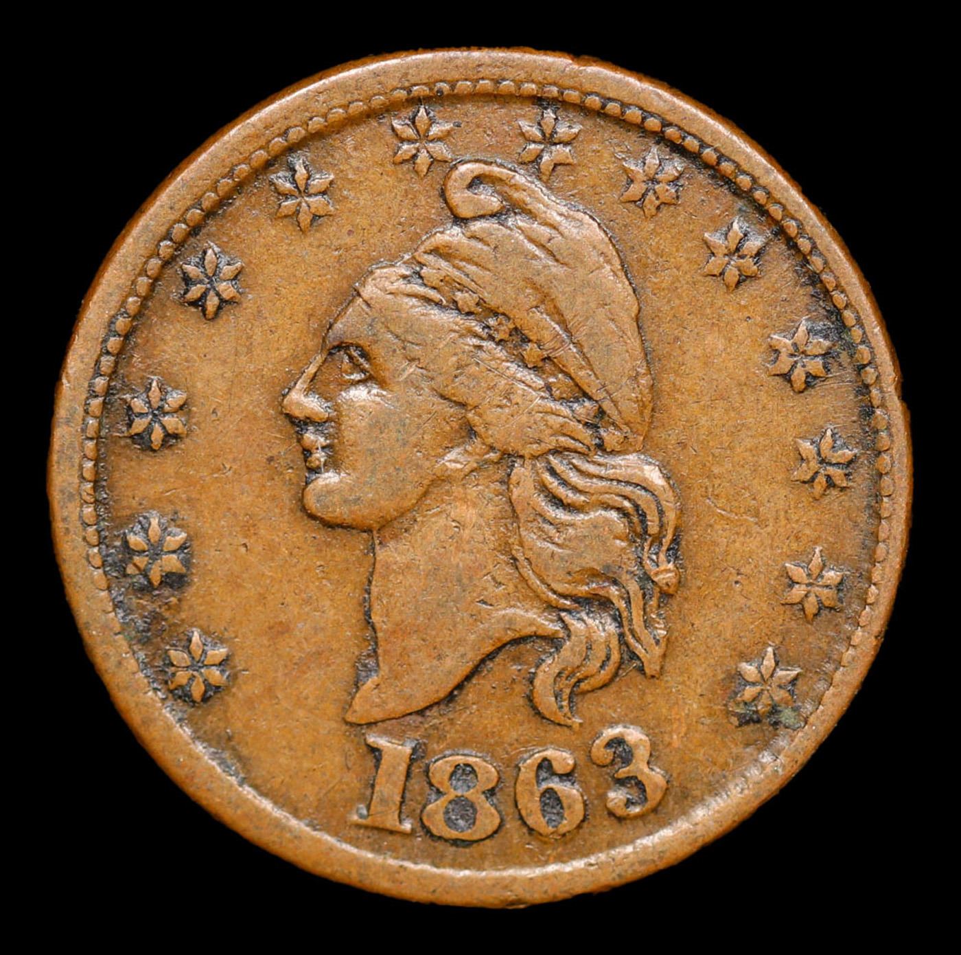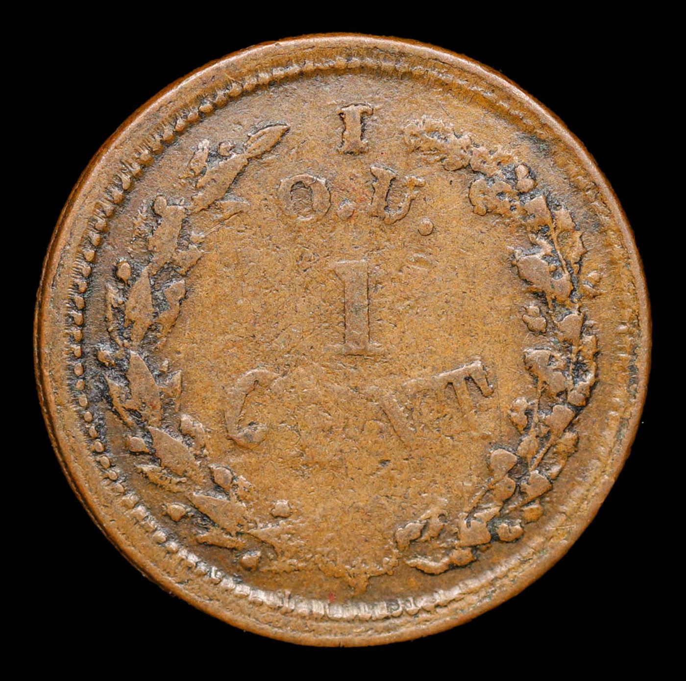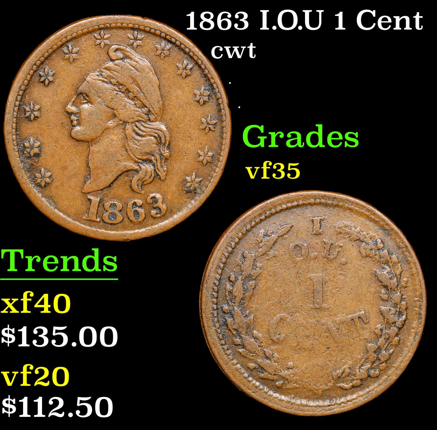 1863 I.O.U 1 Cent Civil War Token 1c Grades vf++.