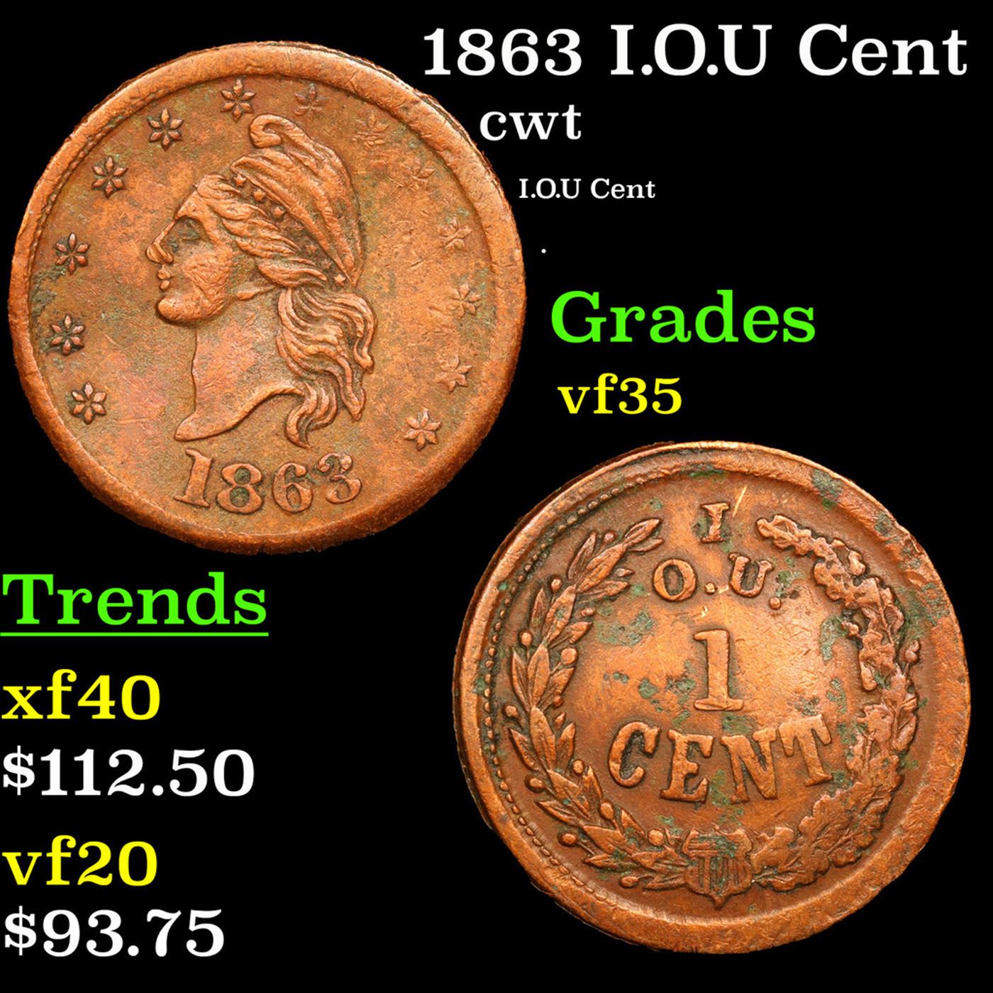 1863 I.O.U Cent Civil War Token 1c Grades vf++.