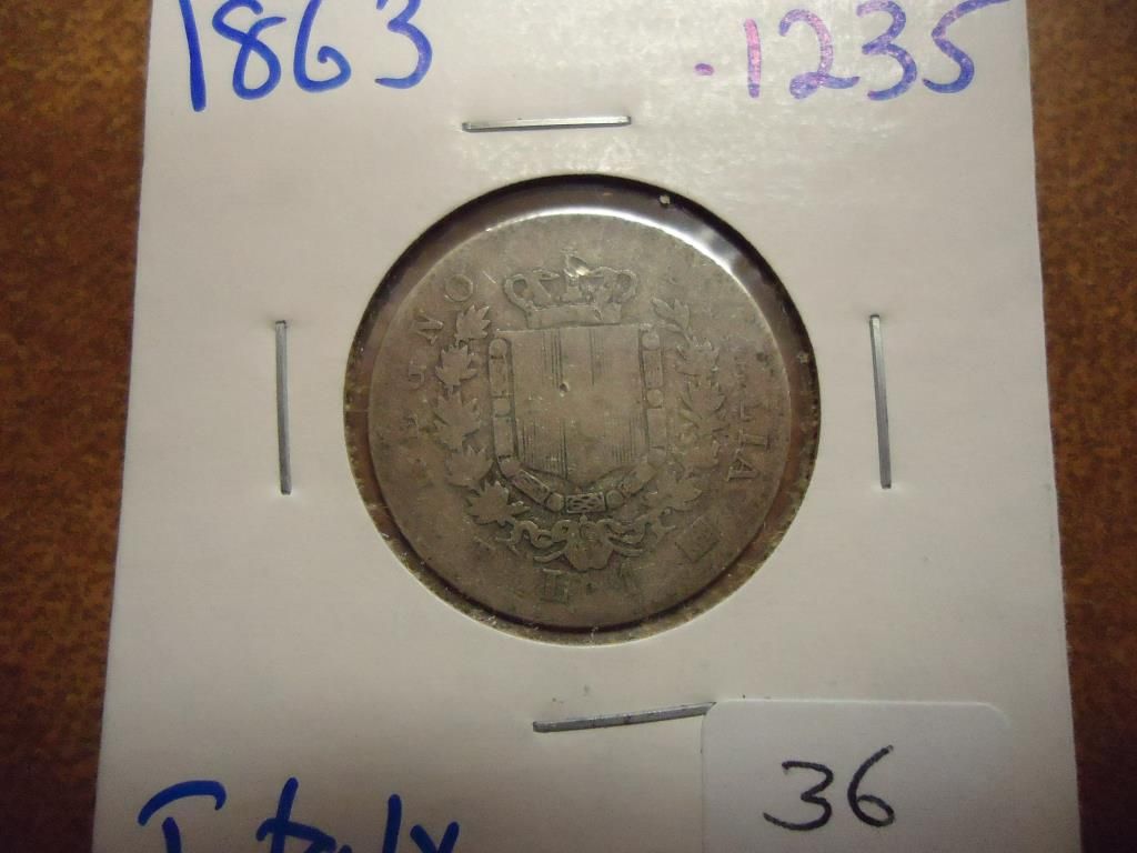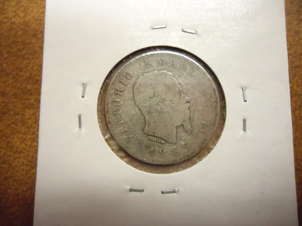 1863 ITALY SILVER 1 LIRE .1235 OZ. ASW