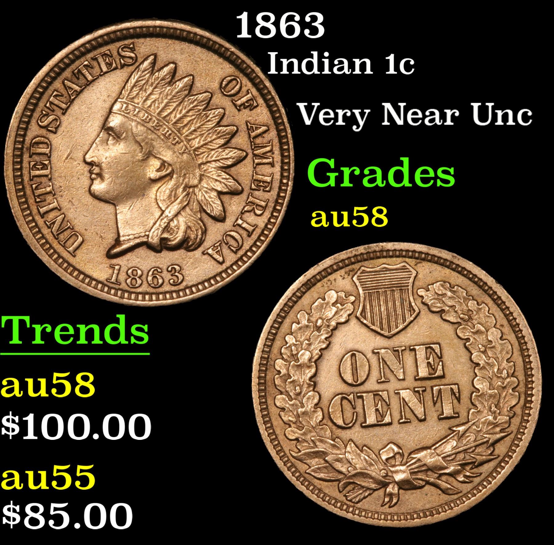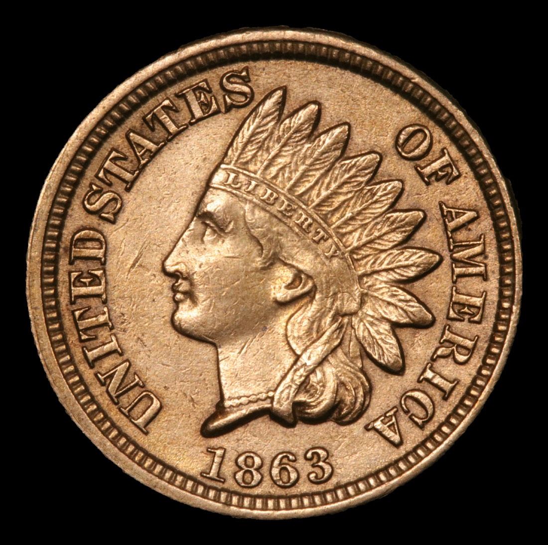1863 . Very Near Unc Indian Cent 1c Grades Choice AU/BU Slider.