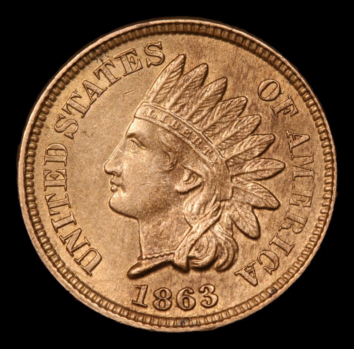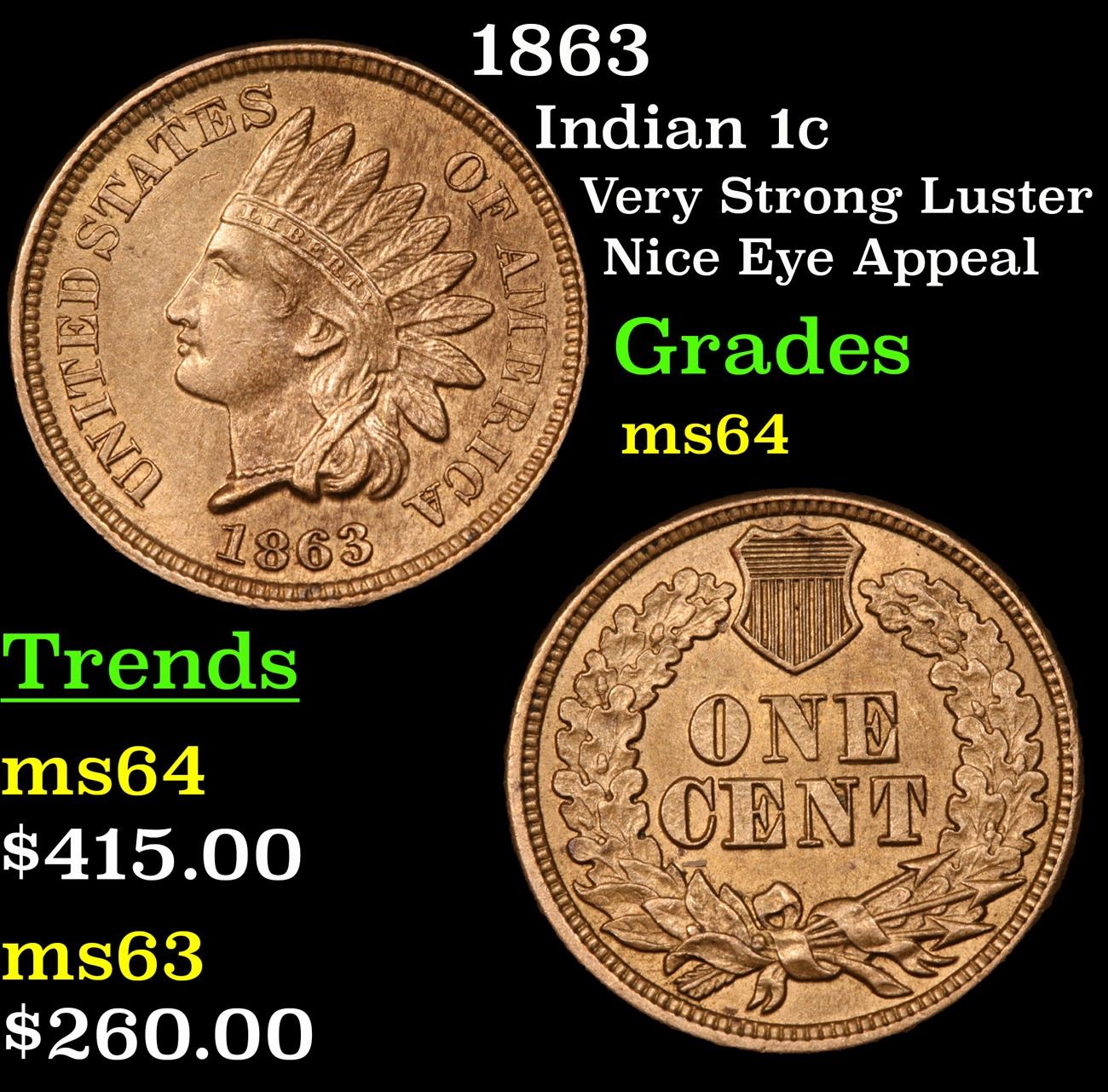 1863 Very Strong Luster Nice Eye Appeal Indian Cent 1c Grades Choice Unc.