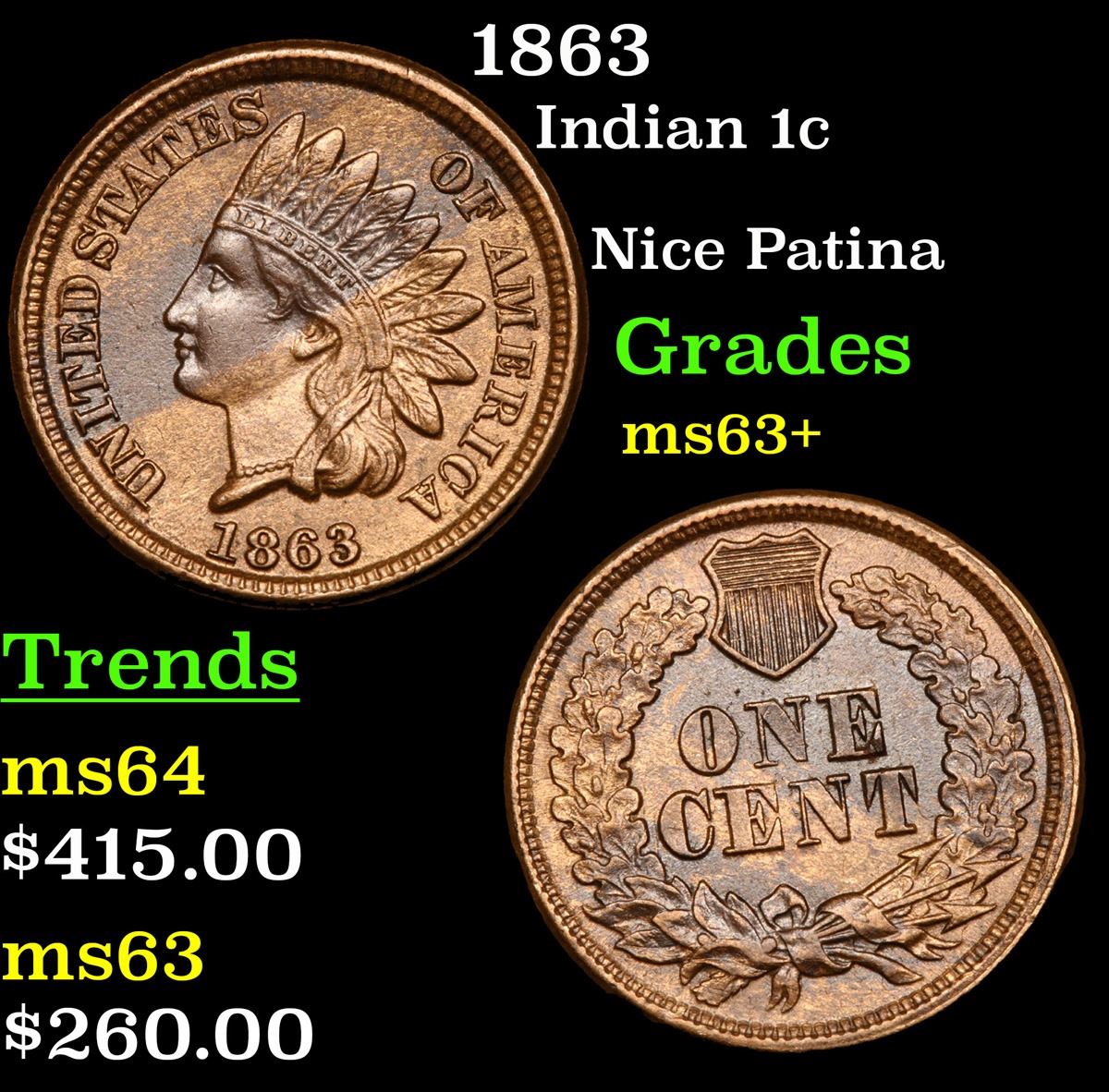 1863 Nice Patina . Indian Cent 1c Grades Select+ Unc.
