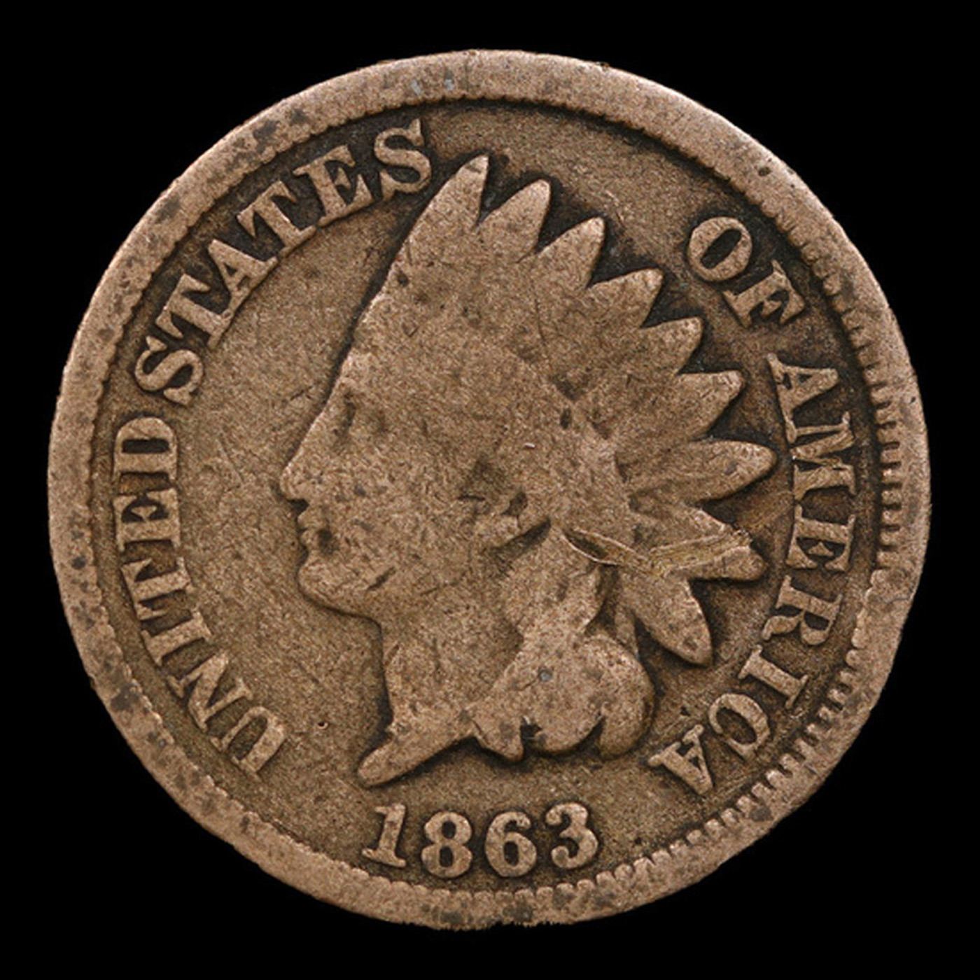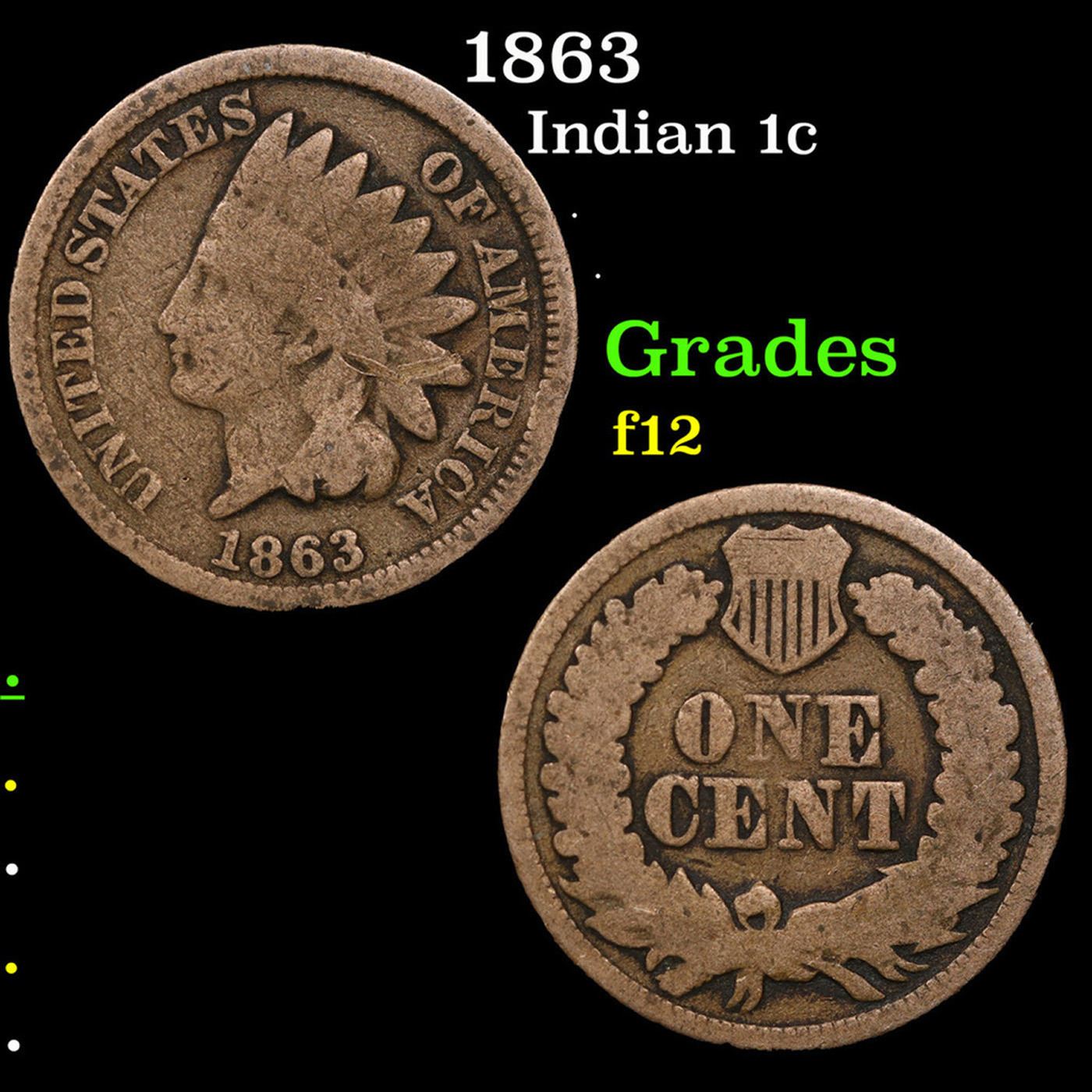 1863 Indian Cent 1c Grades f, fine