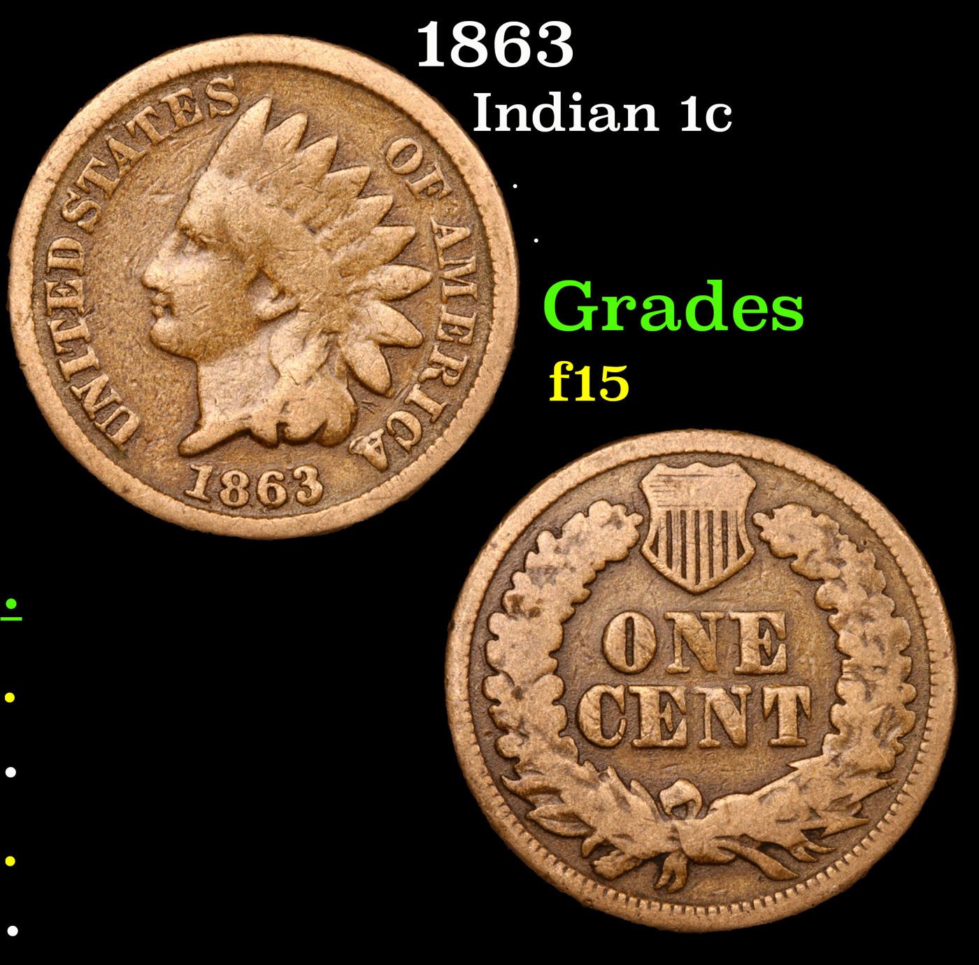 1863 Indian Cent 1c Grades f+.