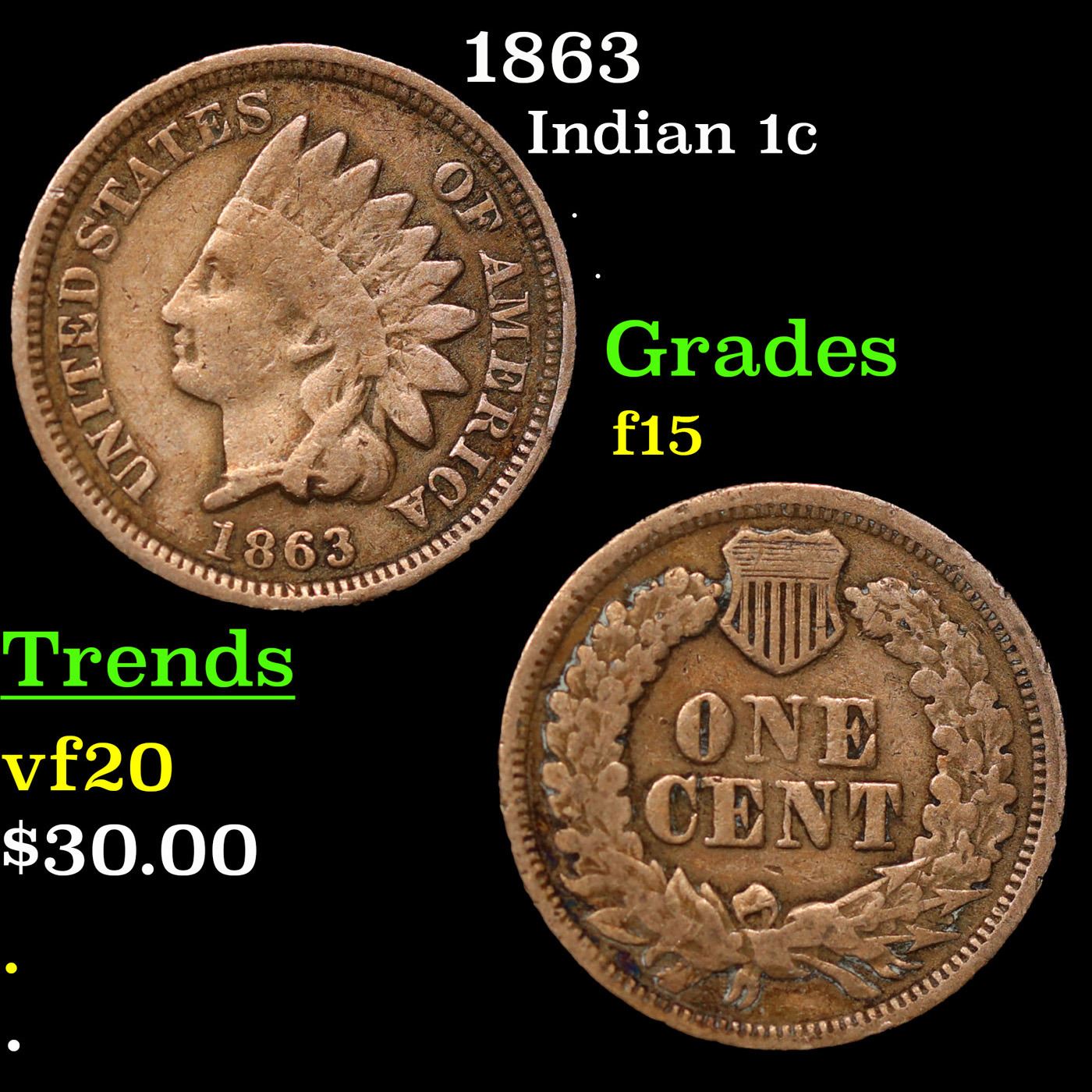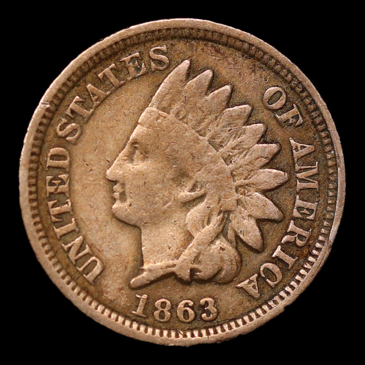1863 Indian Cent 1c Grades f+.