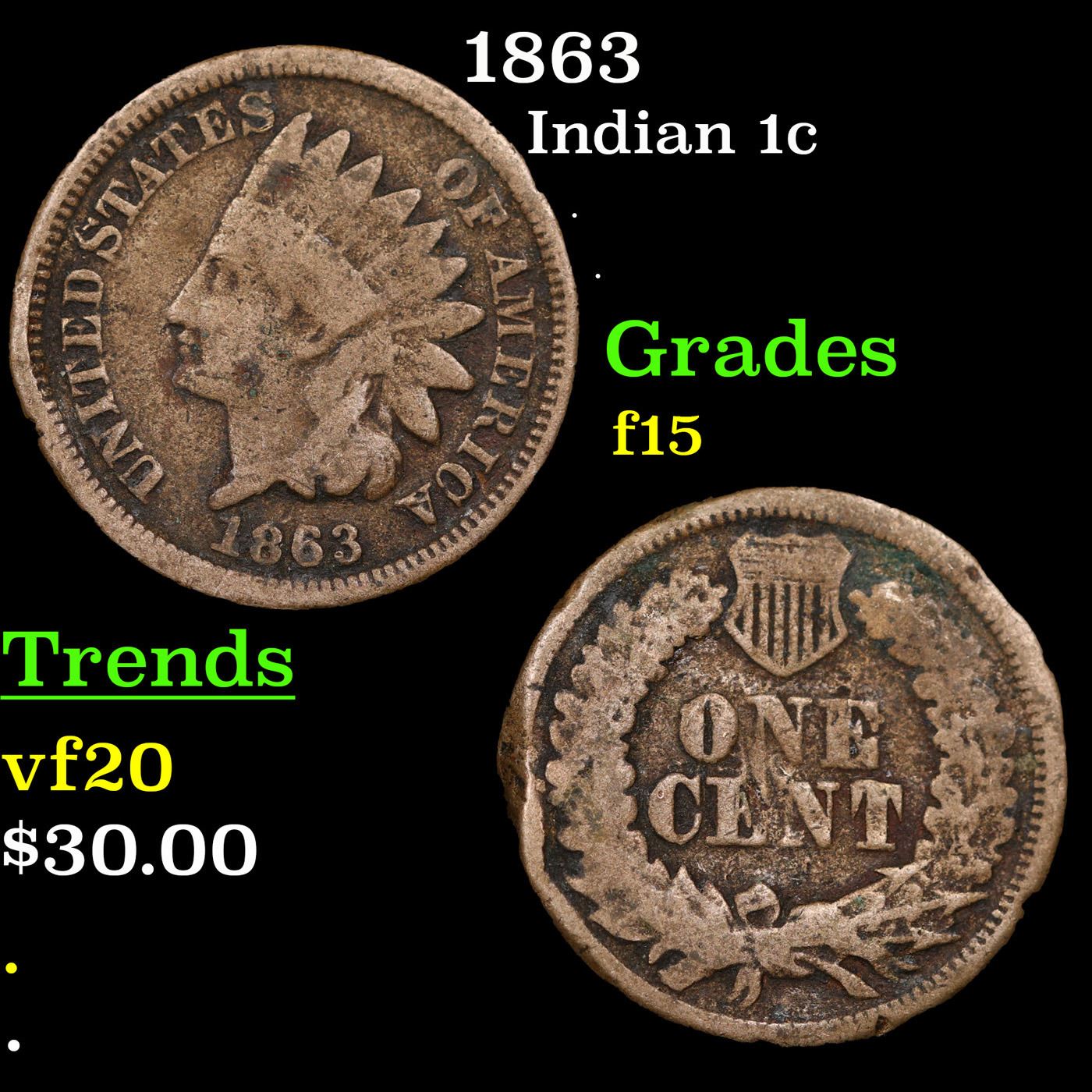 1863 Indian Cent 1c Grades f+.