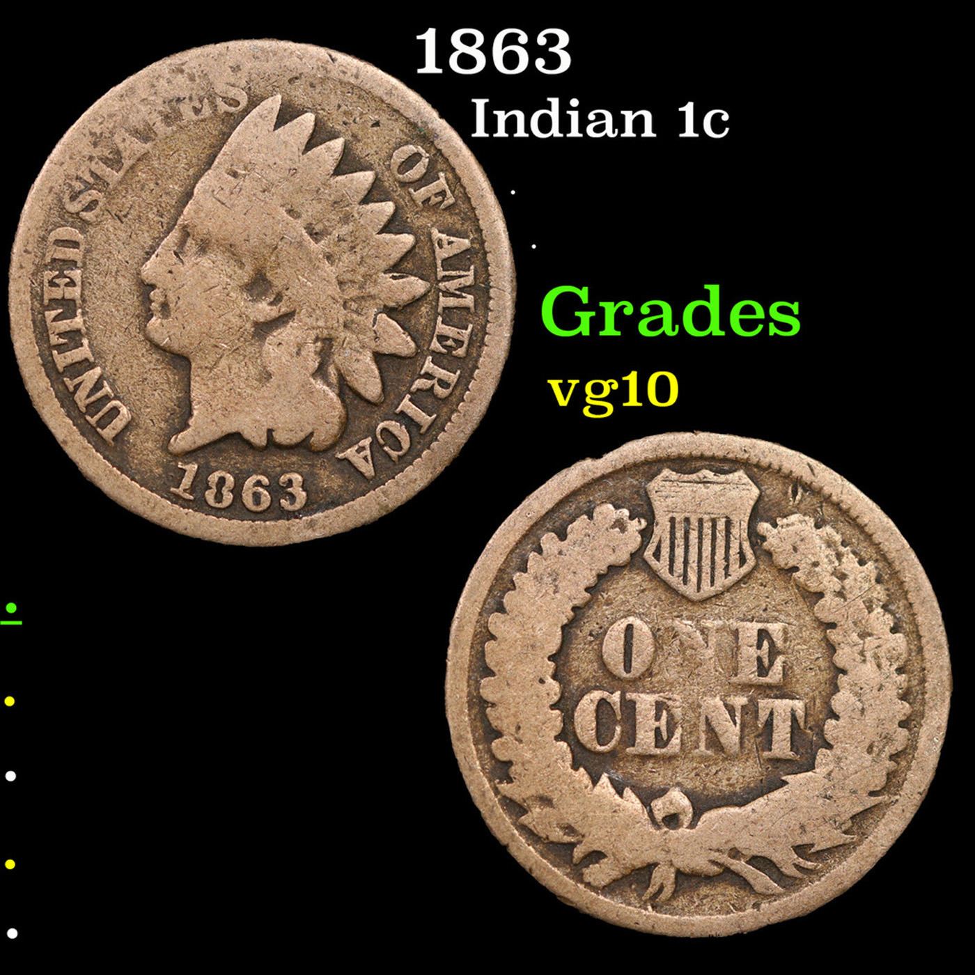 1863 Indian Cent 1c Grades vg+.