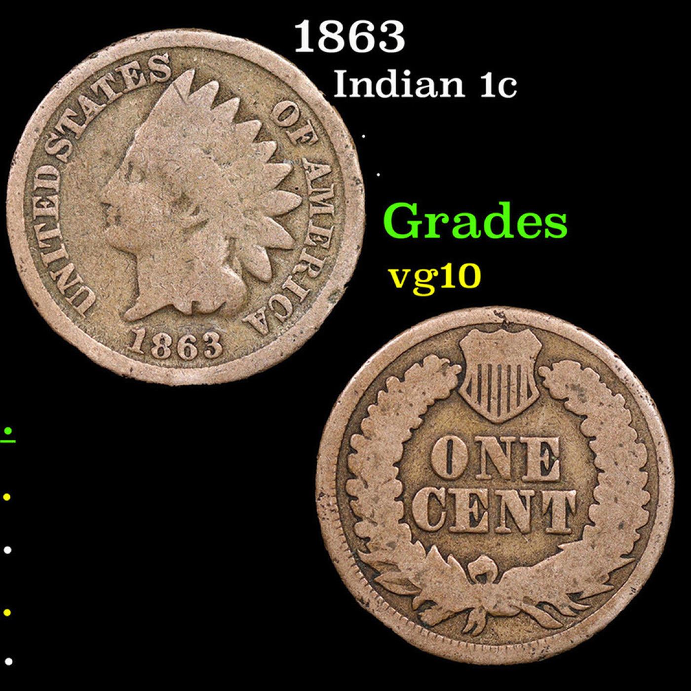 1863 Indian Cent 1c Grades vg+.