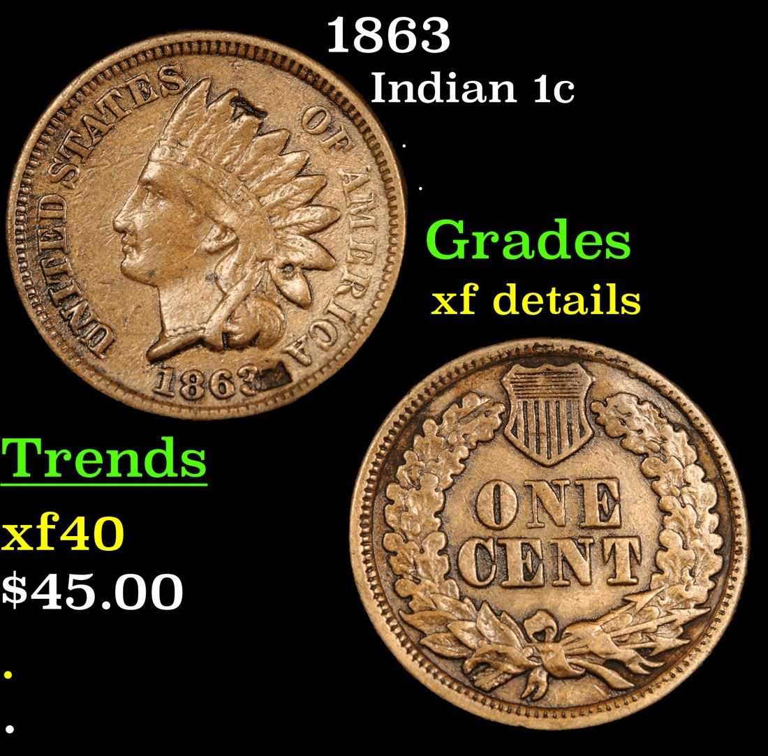 1863 . . Indian Cent 1c Grades xf details.
