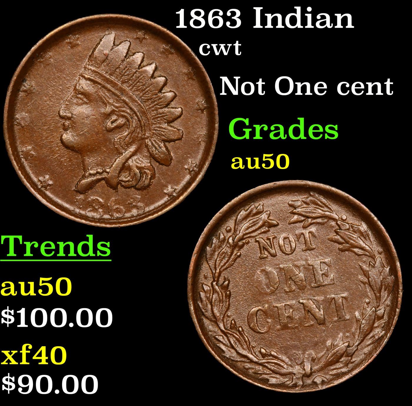 1863 Indian Civil War Token 1c Grades AU, Almost Unc.