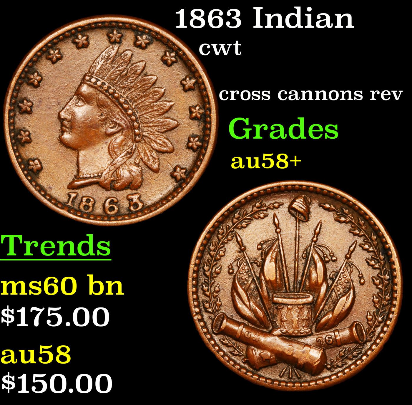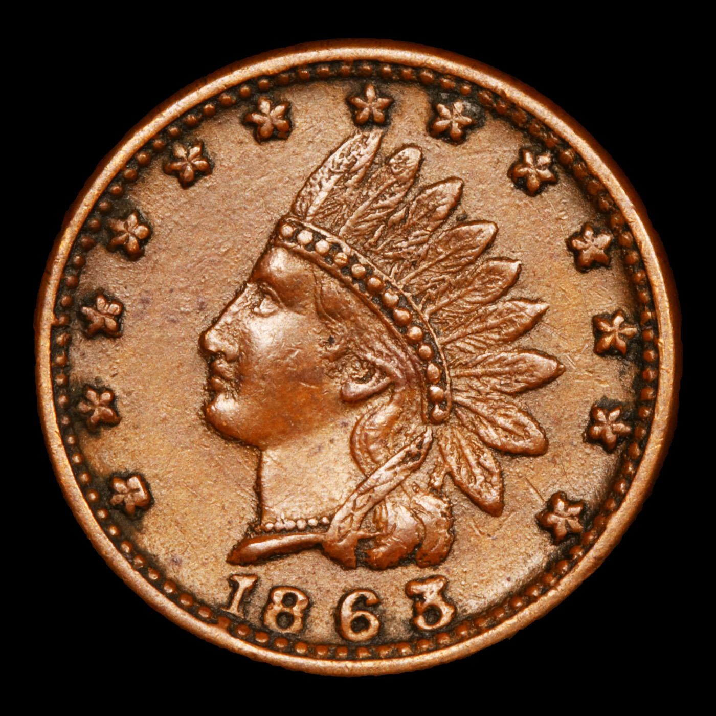 1863 Indian Civil War Token 1c Grades Choice AU/BU Slider+.