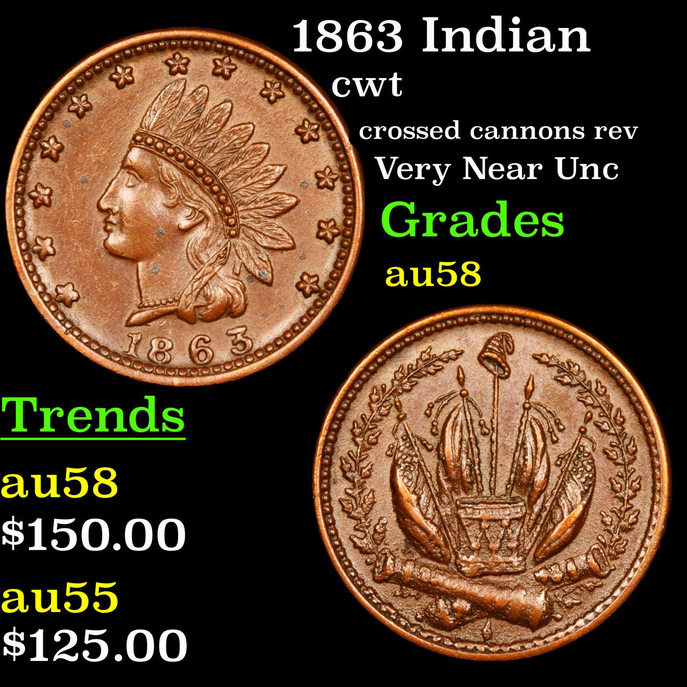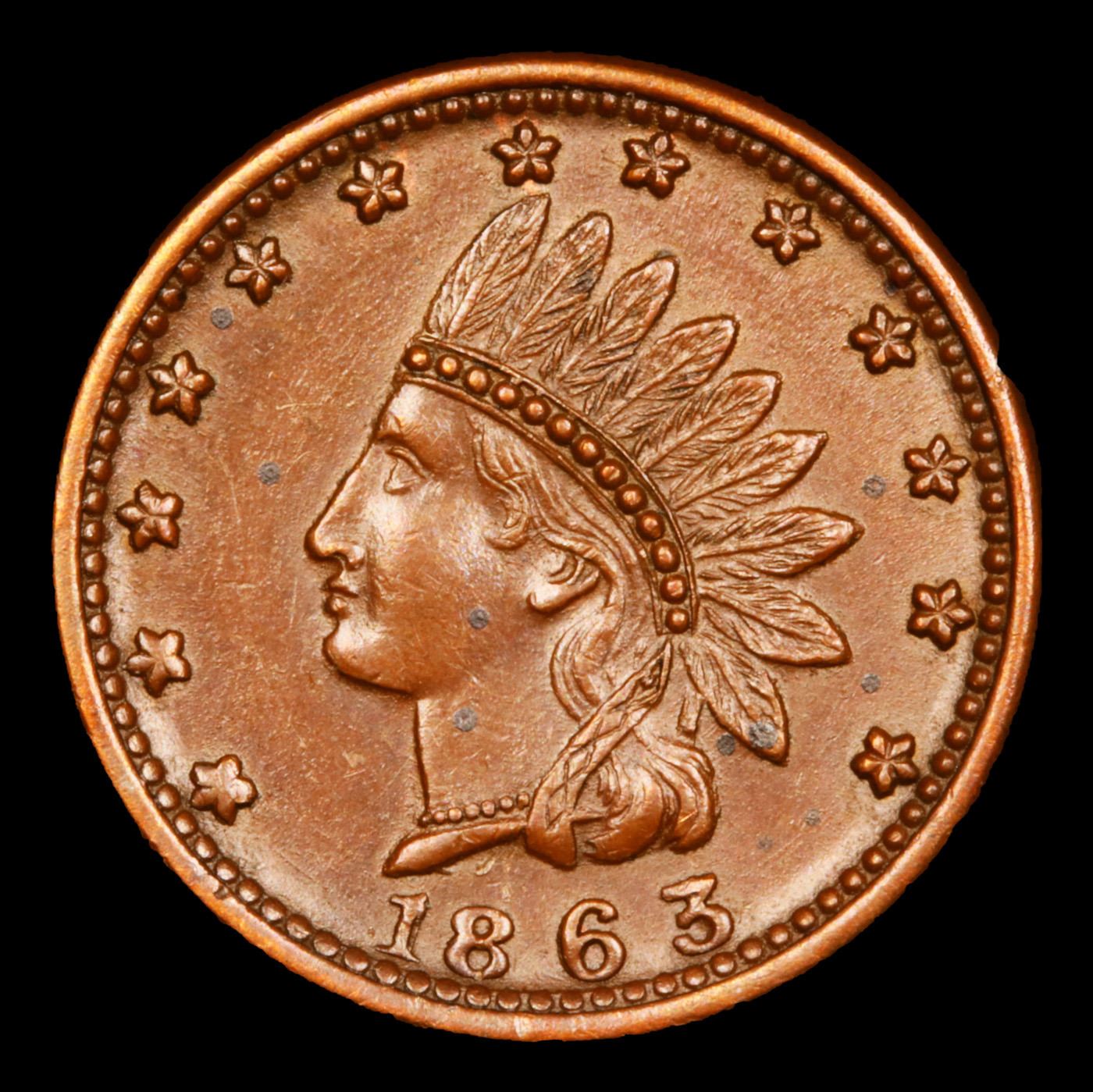 1863 Indian Civil War Token 1c Grades Choice AU/BU Slider.