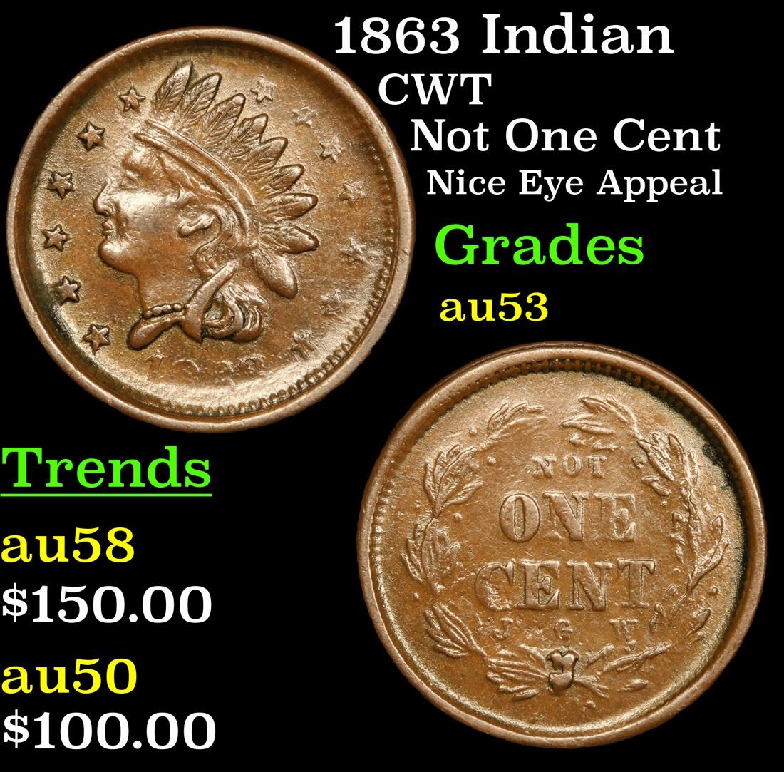 1863 Indian Not One Cent Nice Eye Appeal Civil War Token 1c Grades Select AU.