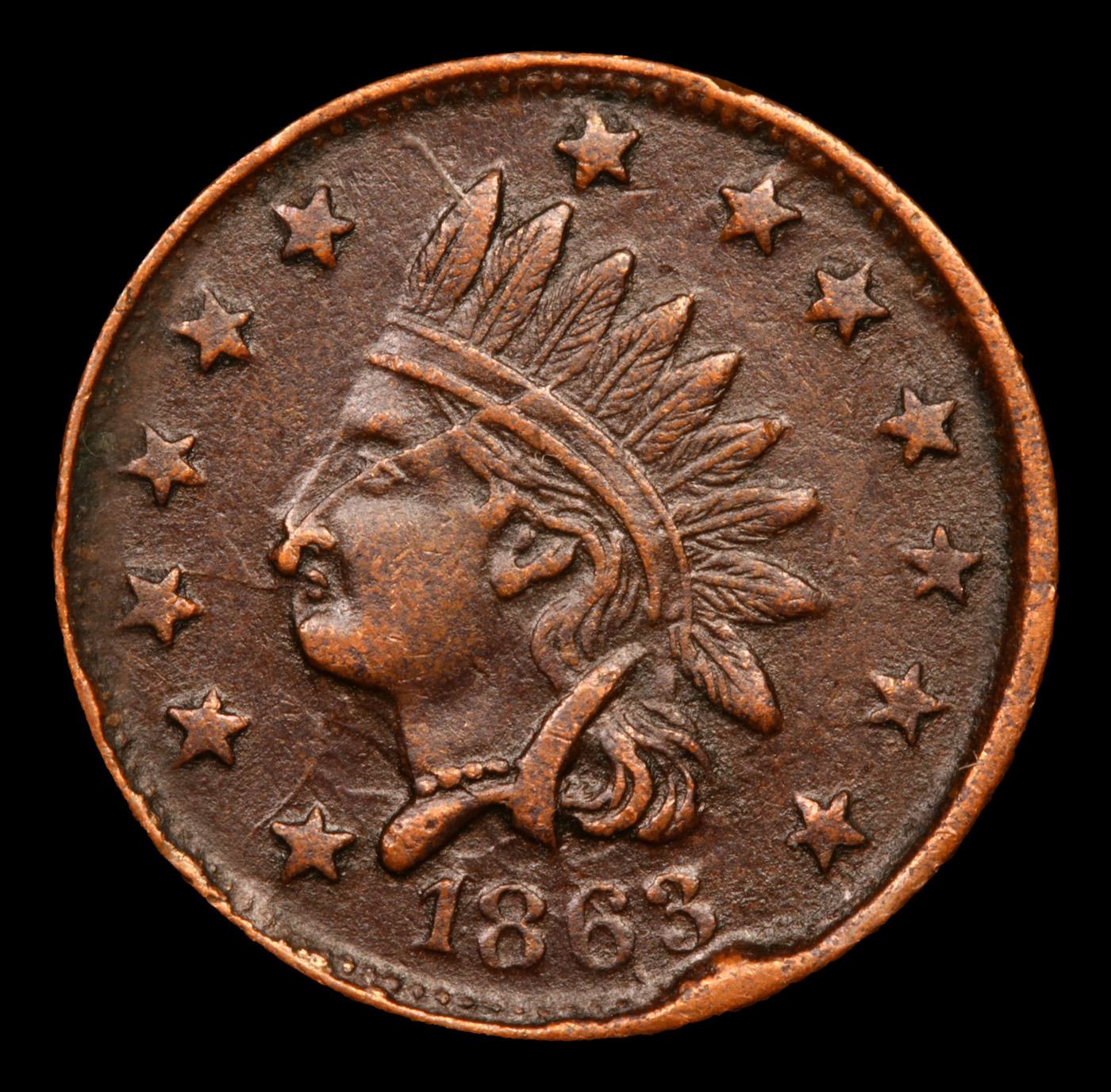 1863 Indian Civil War Token 1c Grades Select AU.