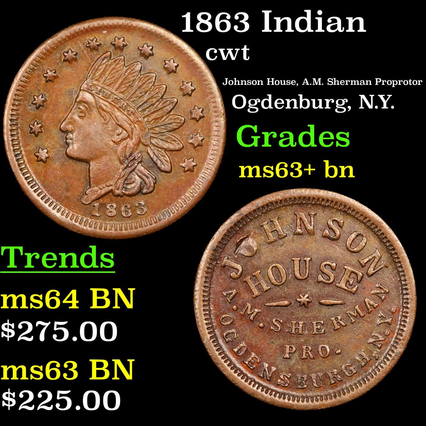 1863 Indian Civil War Token 1c Grades Select+ Unc BN.