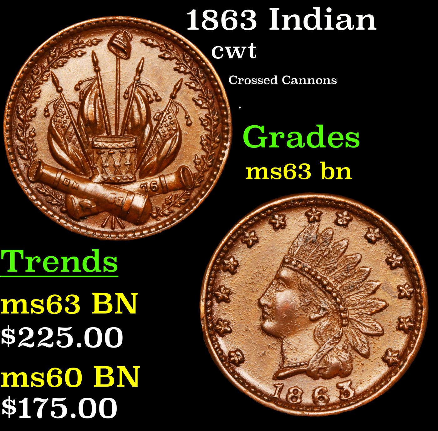 1863 Indian Civil War Token 1c Grades Select Unc BN.