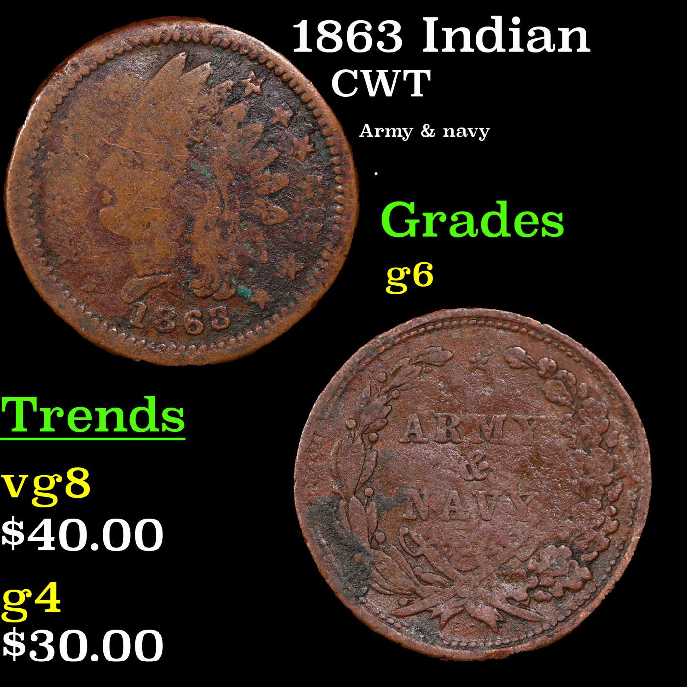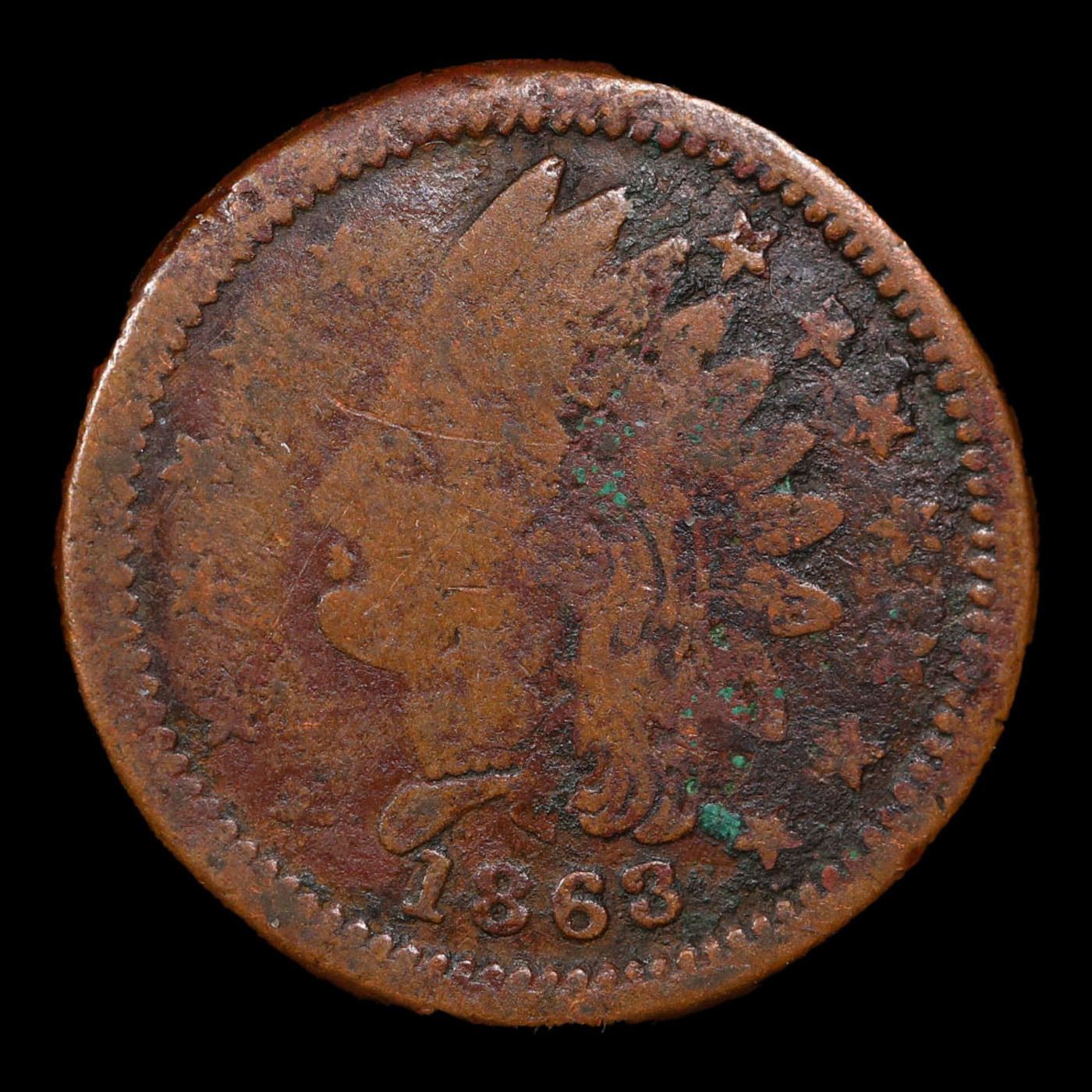 1863 Indian Civil War Token 1c Grades g+.