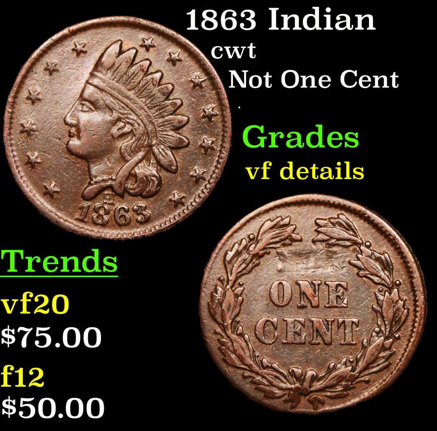 1863 Indian Civil War Token 1c Grades vf details.