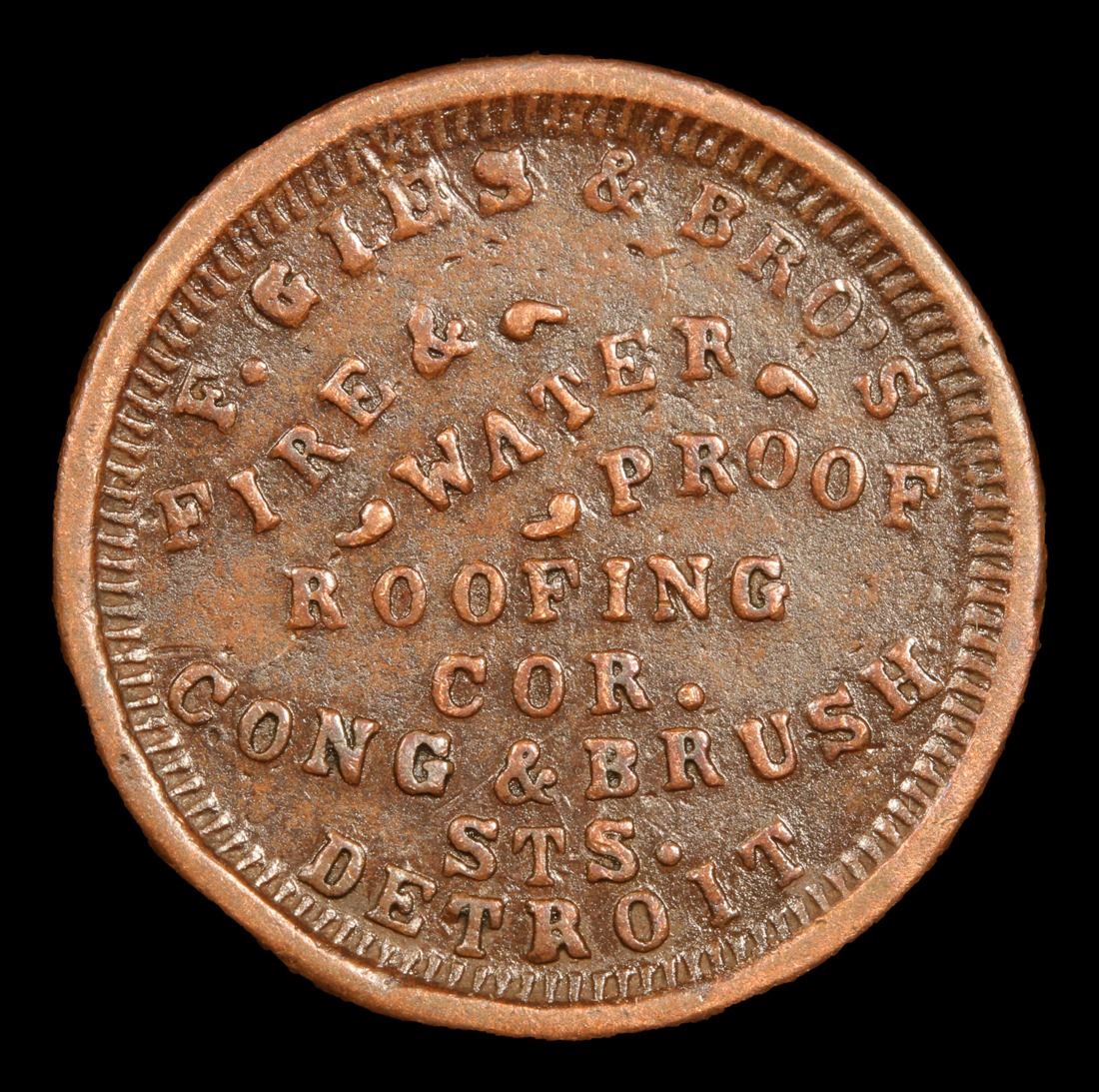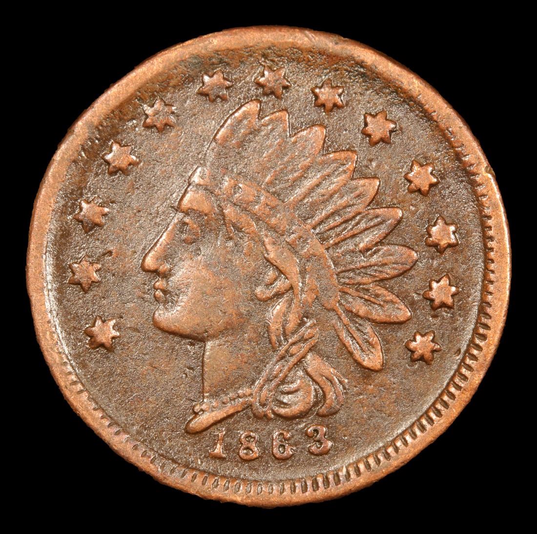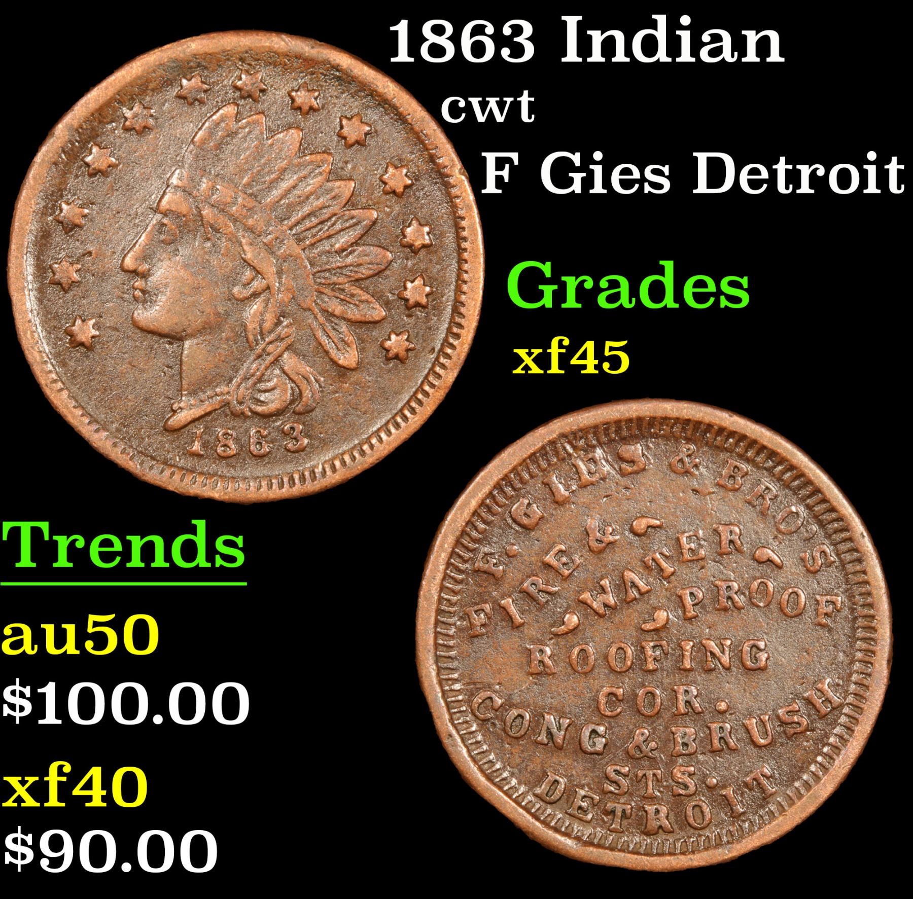 1863 Indian Civil War Token 1c Grades xf+. F Gies Detroit