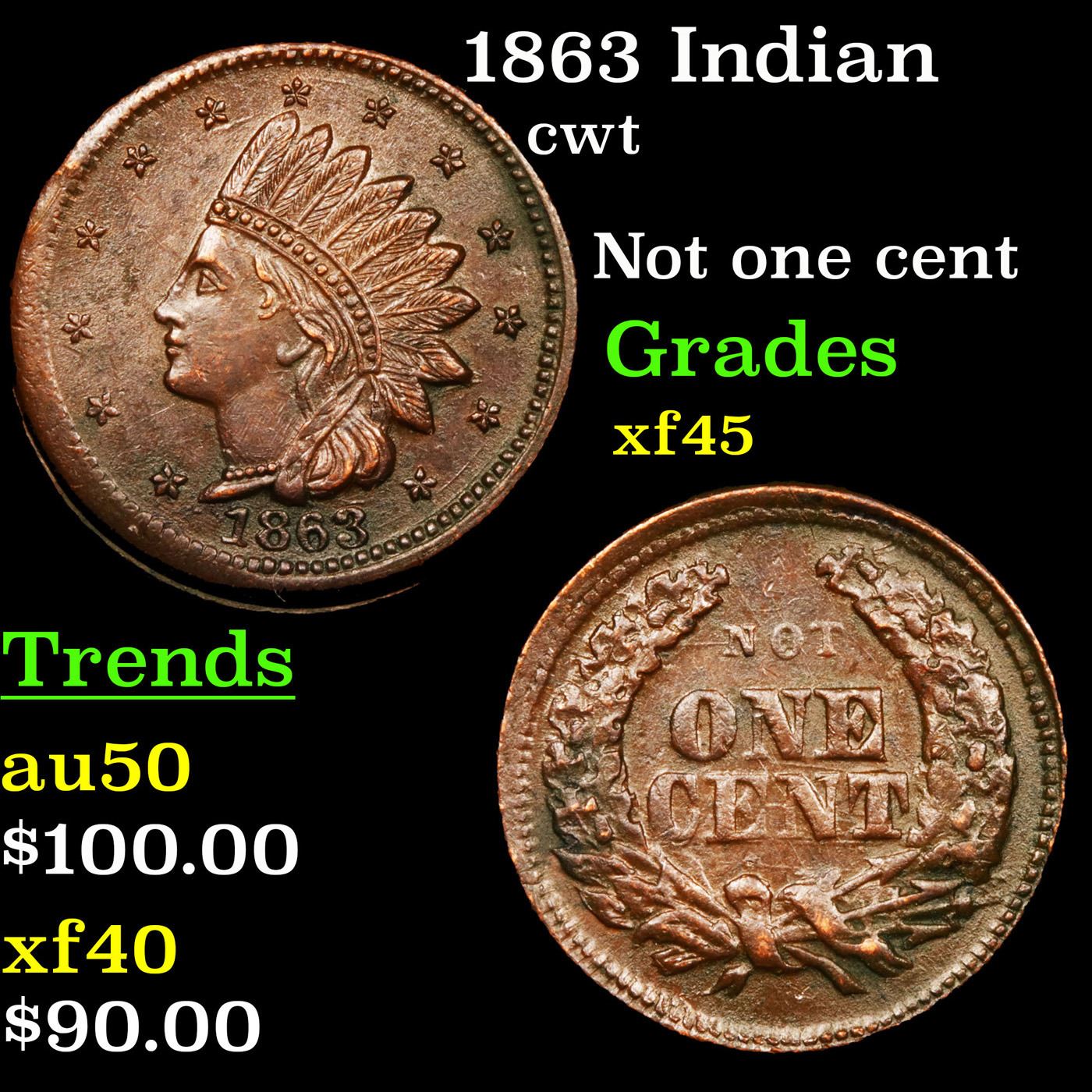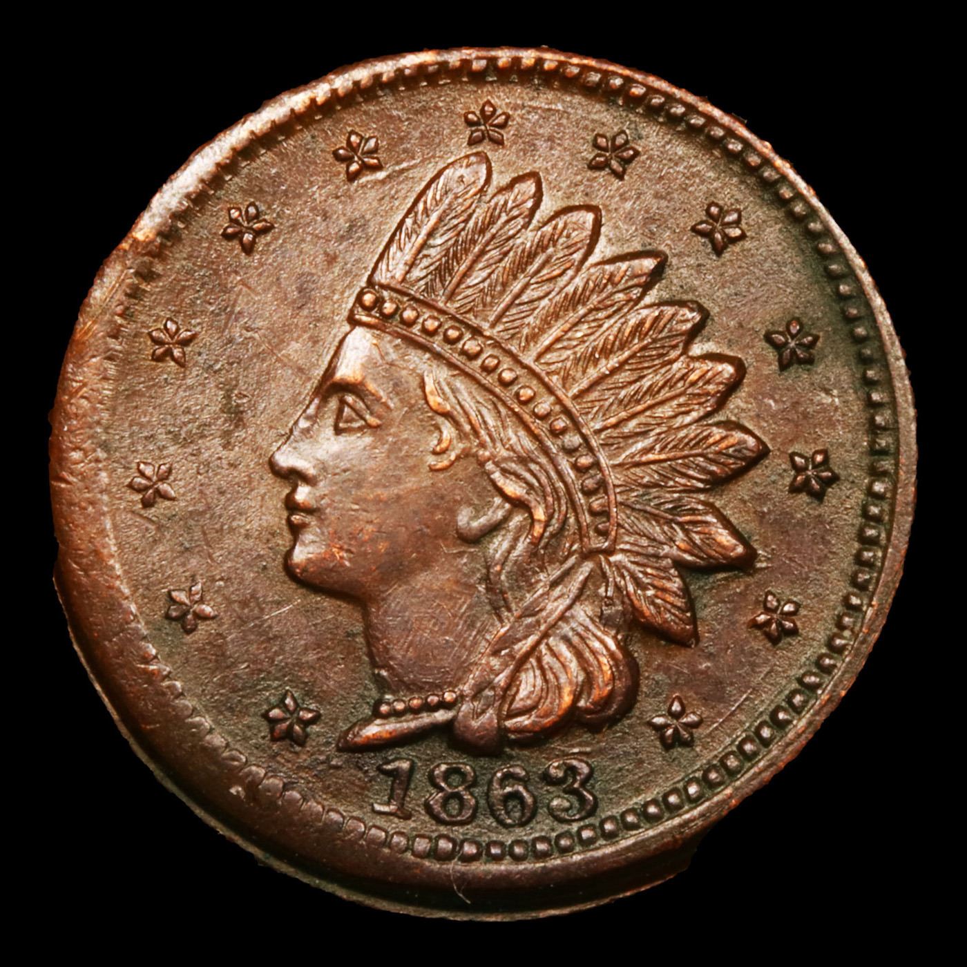 1863 Indian Civil War Token 1c Grades xf+.