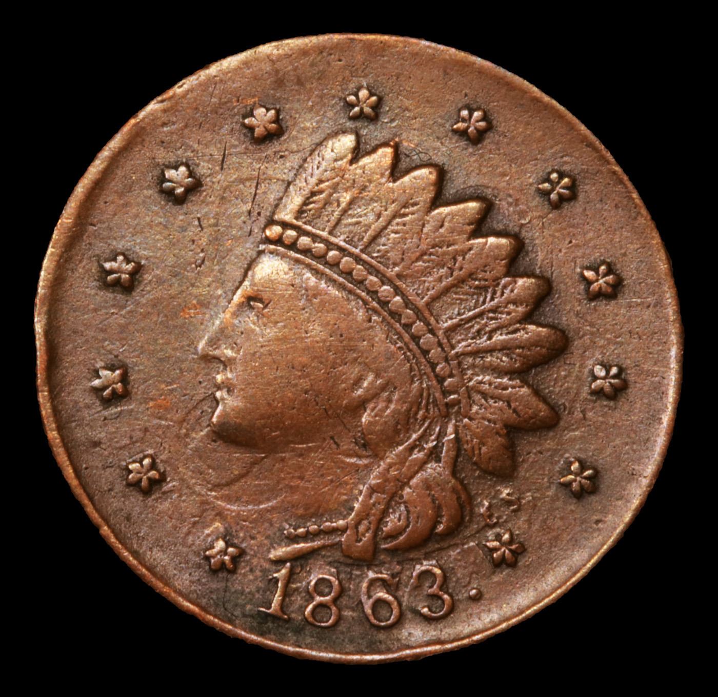 1863 Indian F-61/198A R3 Civil War Token 1c Grades xf.