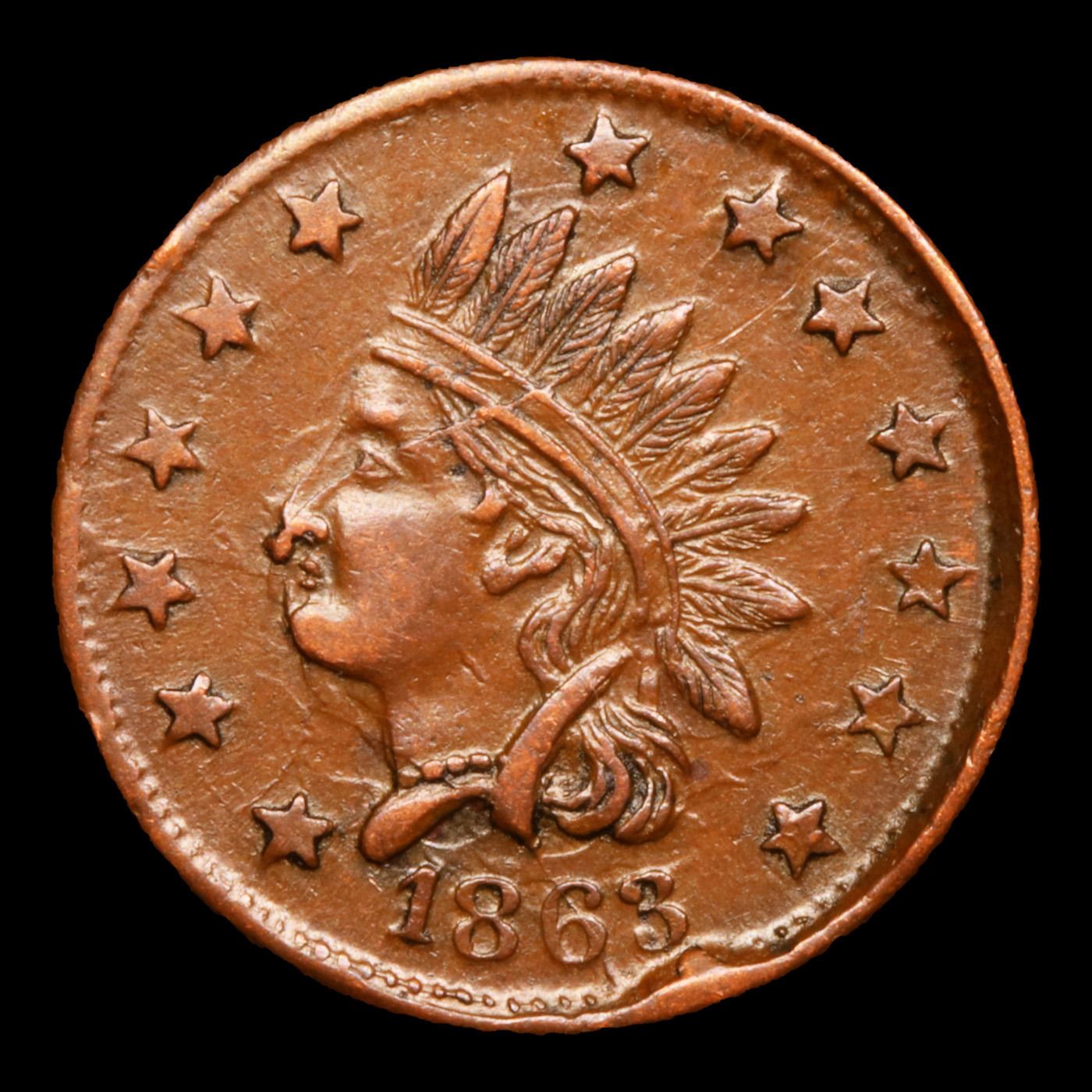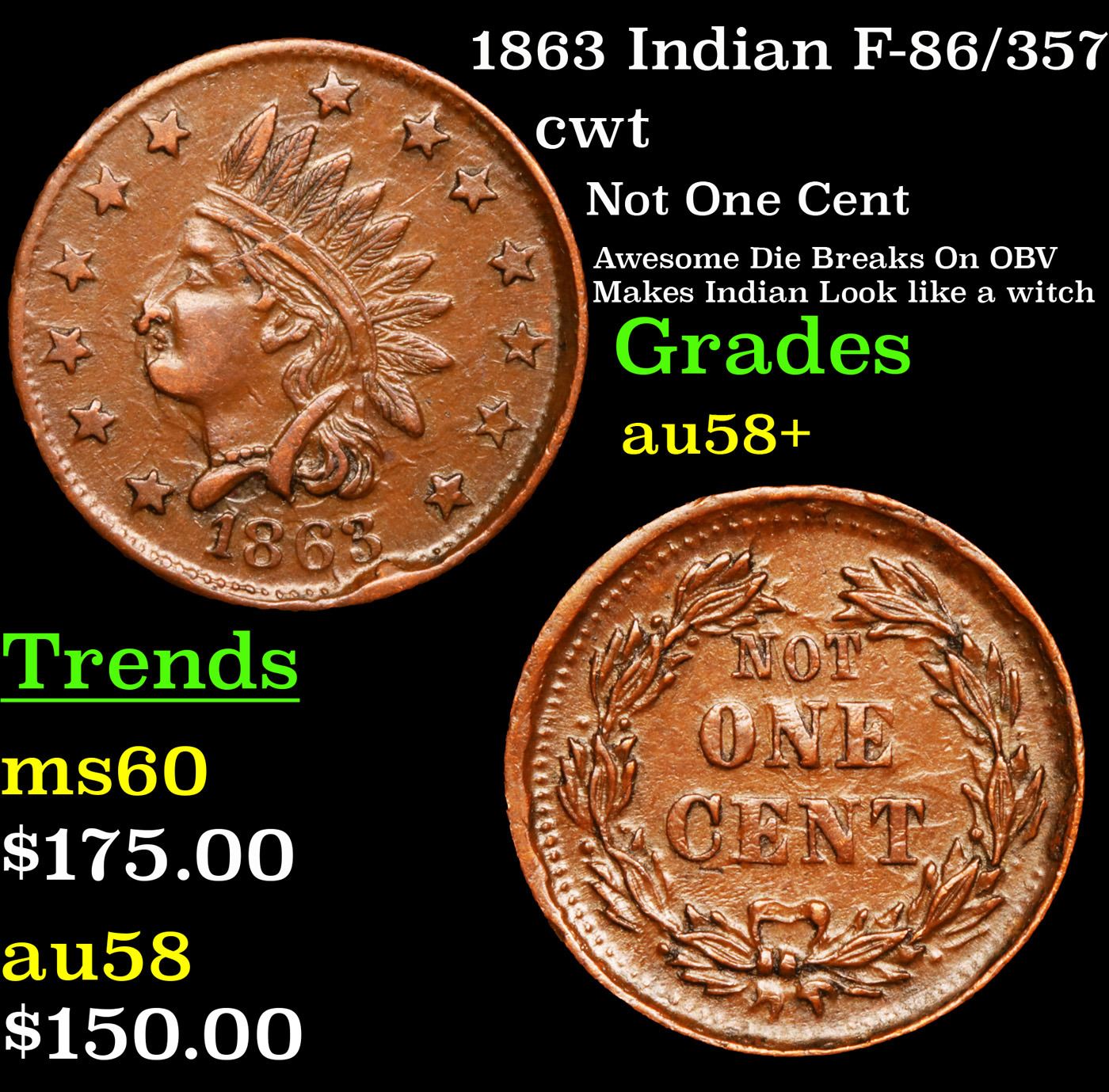 1863 Indian F-86/357 Civil War Token 1c Grades Choice AU/BU Slider+.