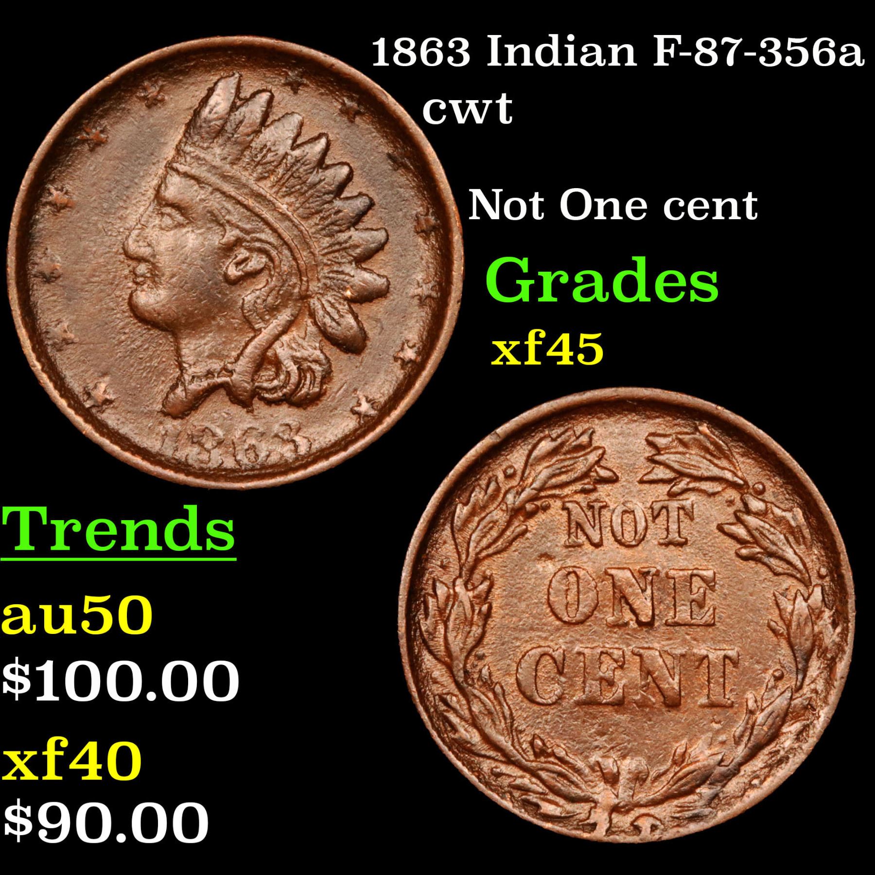 1863 Indian F-87-356a Civil War Token 1c Grades xf+.