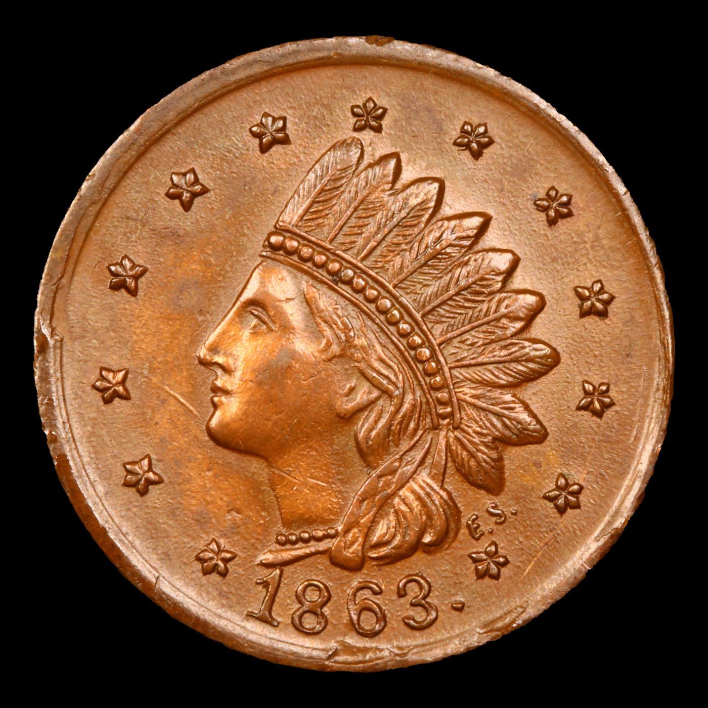 1863 Indian F-NY-630-AL-1a R3 Civil War Token 1c Grades Unc Details.