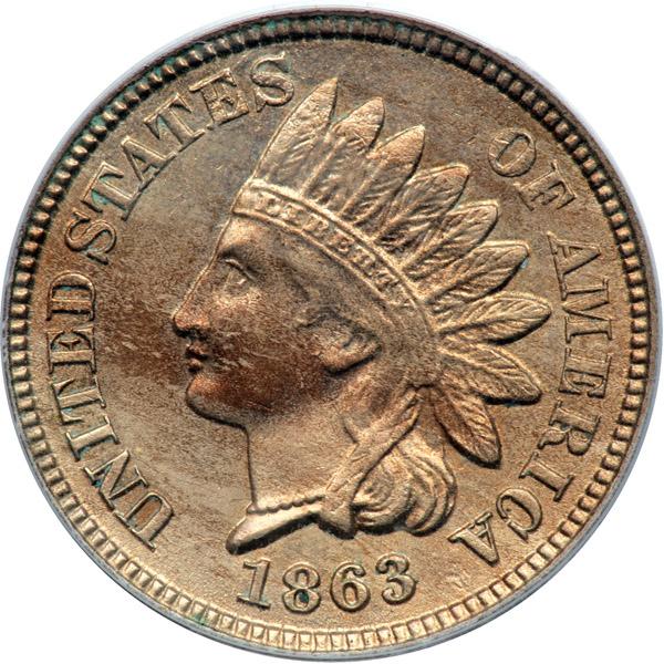 1863 Indian Head Cent. PCGS graded MS-63. Some luster still visible (PCGS # 2067) .