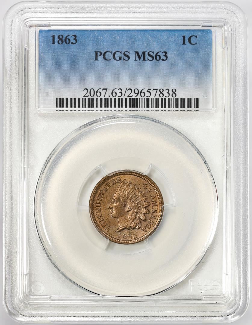 One 1863 Indian Head Cent Coin PCGS MS63. PCGS Graded.