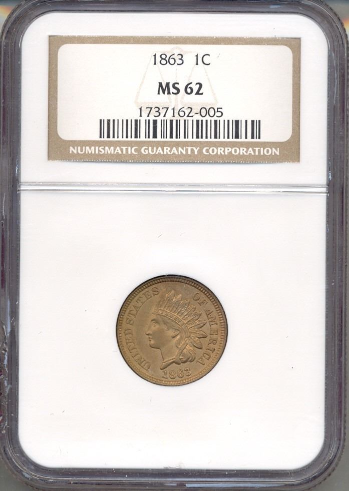 One 1863 Indian Head Cent NGC MS62.