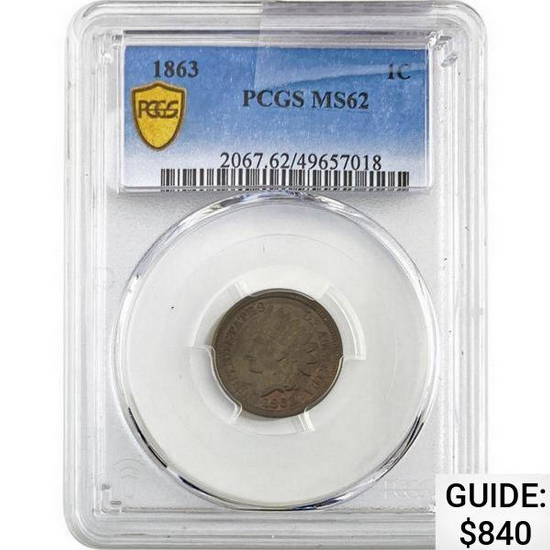 1863 Indian Head Cent PCGS MS62
